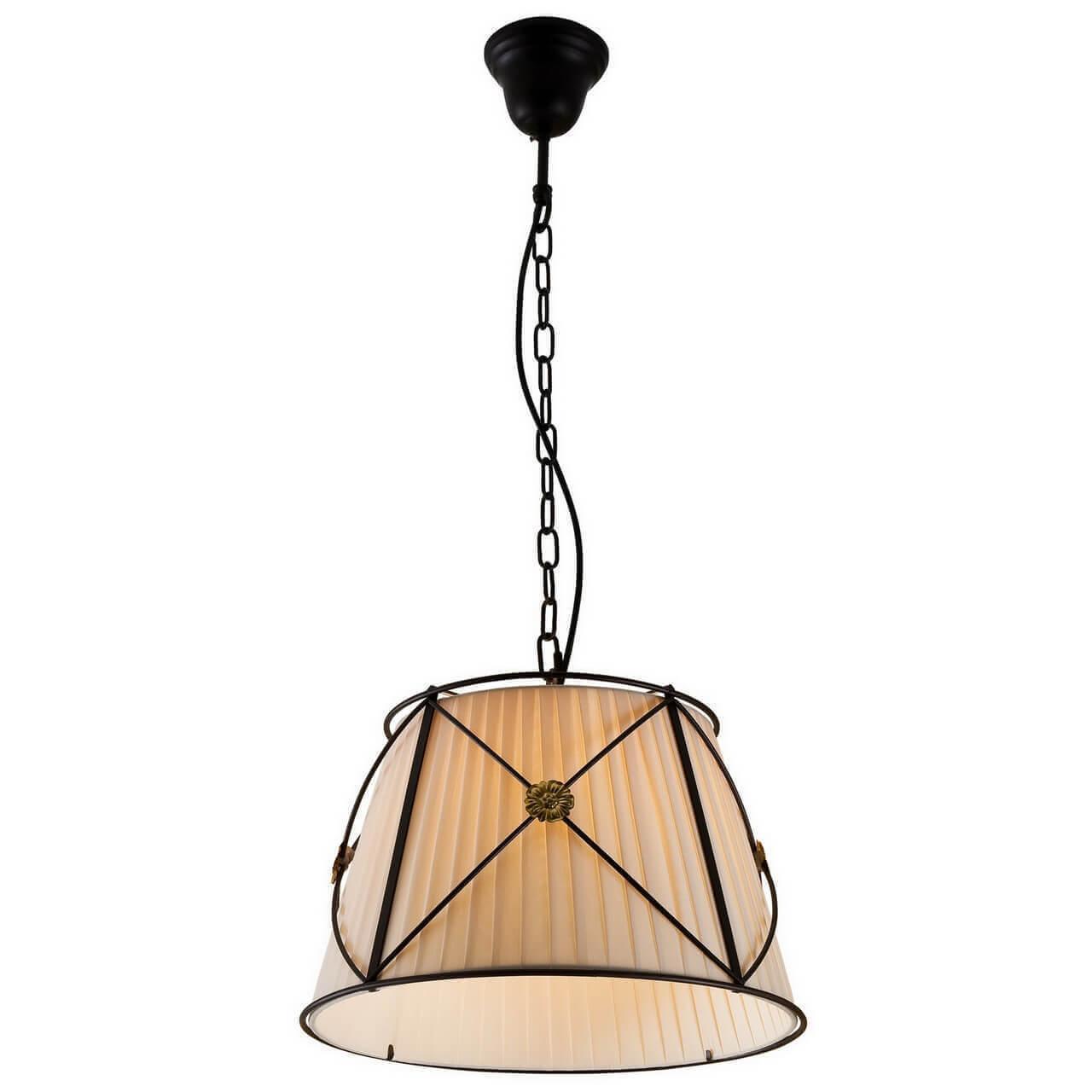 Подвесной светильник Citilux Дрезден CL409111 от Китайского бренда Citilux из коллекции Дрезден Черный предназначен для установки на потолок в кафе и ресторанах в стиле кантри. Cветильник в форме конуса с металлической арматурой черного цвета и бежевого цвета плафонами из ткани предназначен для освещения 5,6 м2.