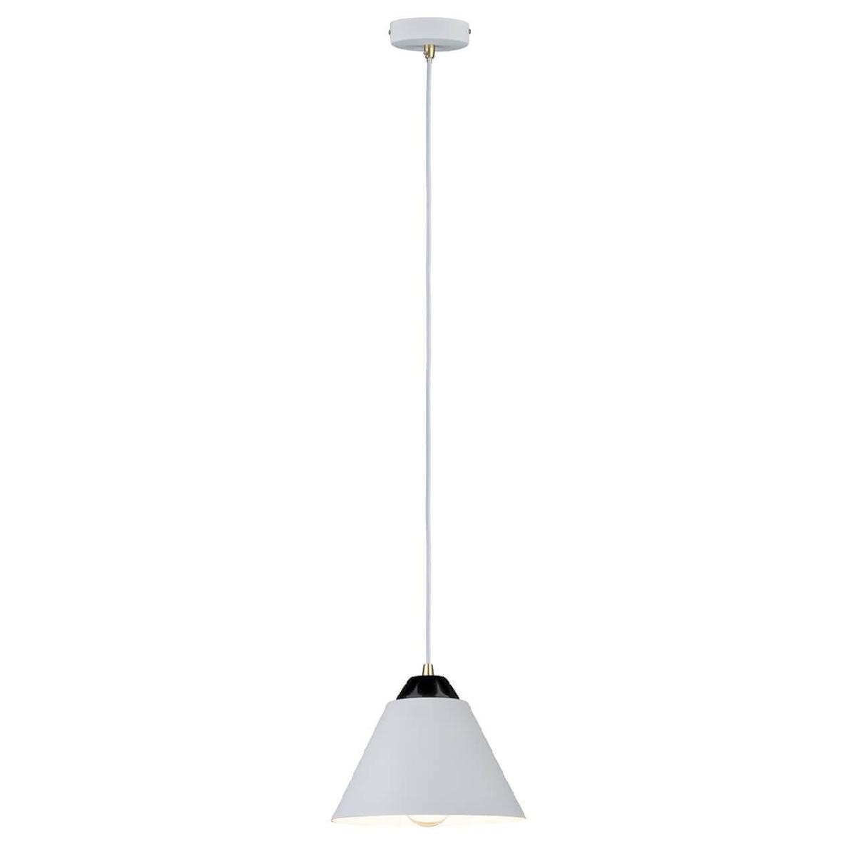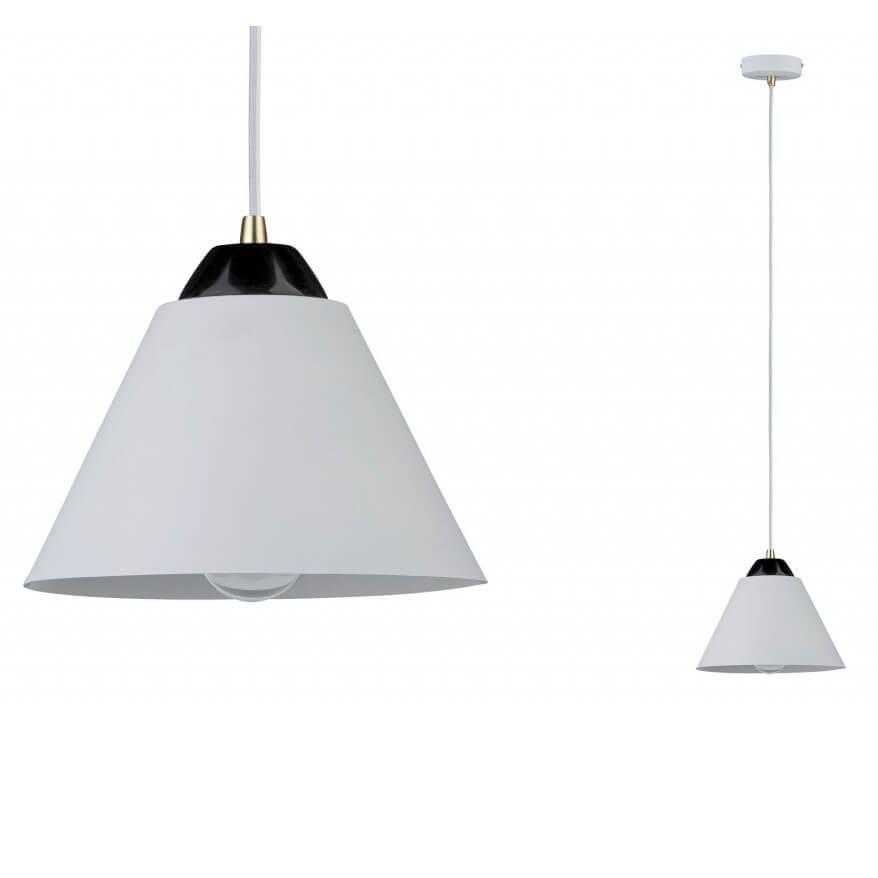 Подвесной светильник Paulmann Maiga 79606 от Немецкого бренда Paulmann из коллекции Maiga предназначен для установки на потолок в кафе и ресторанах в скандинавском стиле. Cветильник в форме конуса с металлической арматурой черного цвета и белого цвета плафонами из предназначен для освещения 1,1 м2.