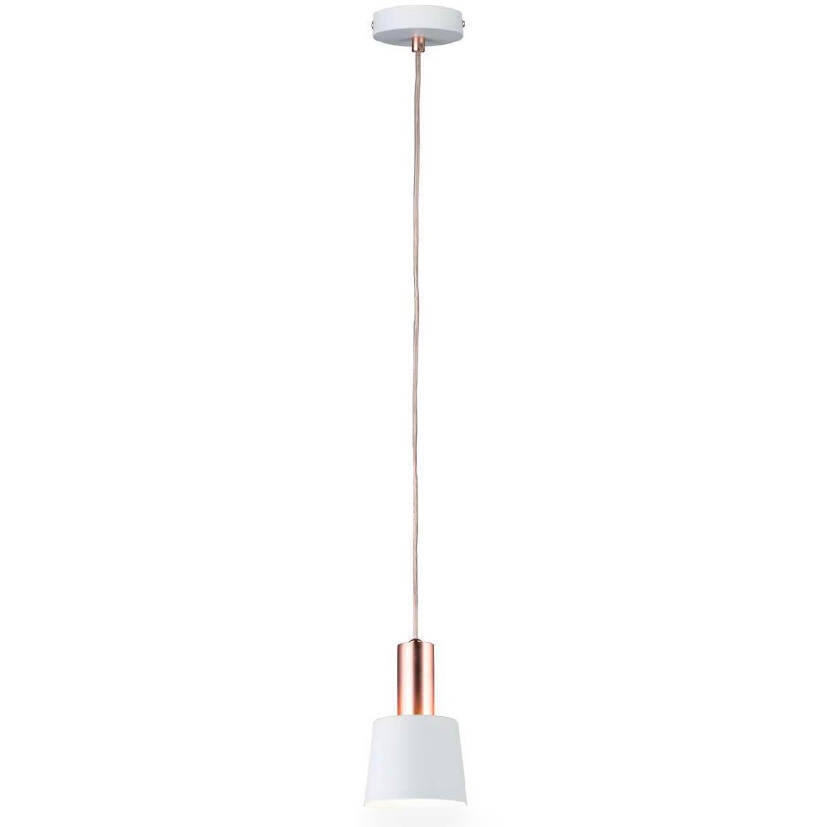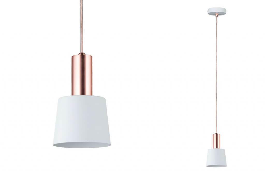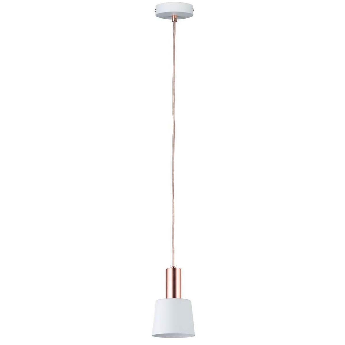 Подвесной светильник Paulmann Mare 79656 от Немецкого бренда Paulmann из коллекции Mare предназначен для установки на потолок в кухне в скандинавском стиле. Cветильник в форме конуса с металлической арматурой цвета меди и белого цвета плафонами из металла предназначен для освещения 1,1 м2.