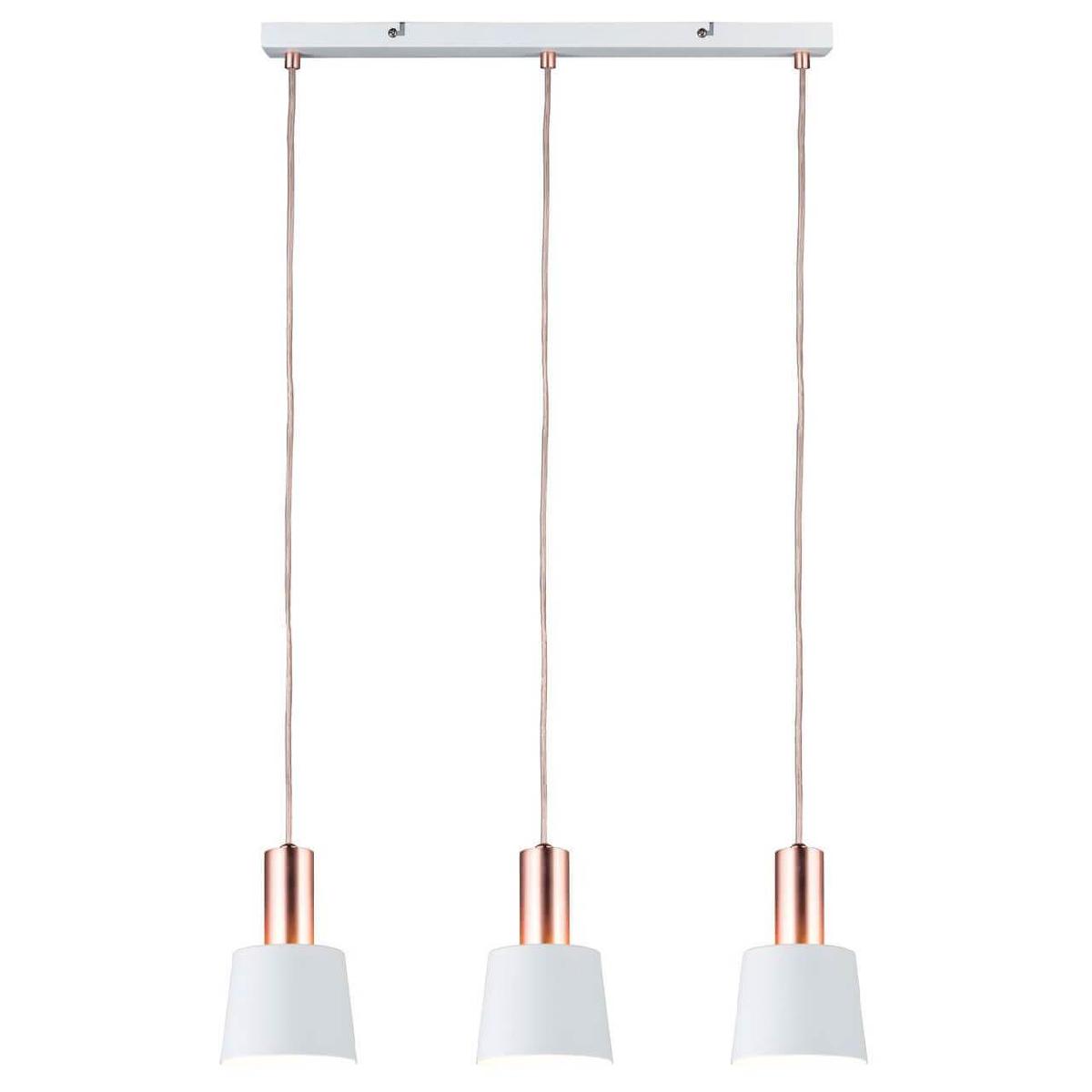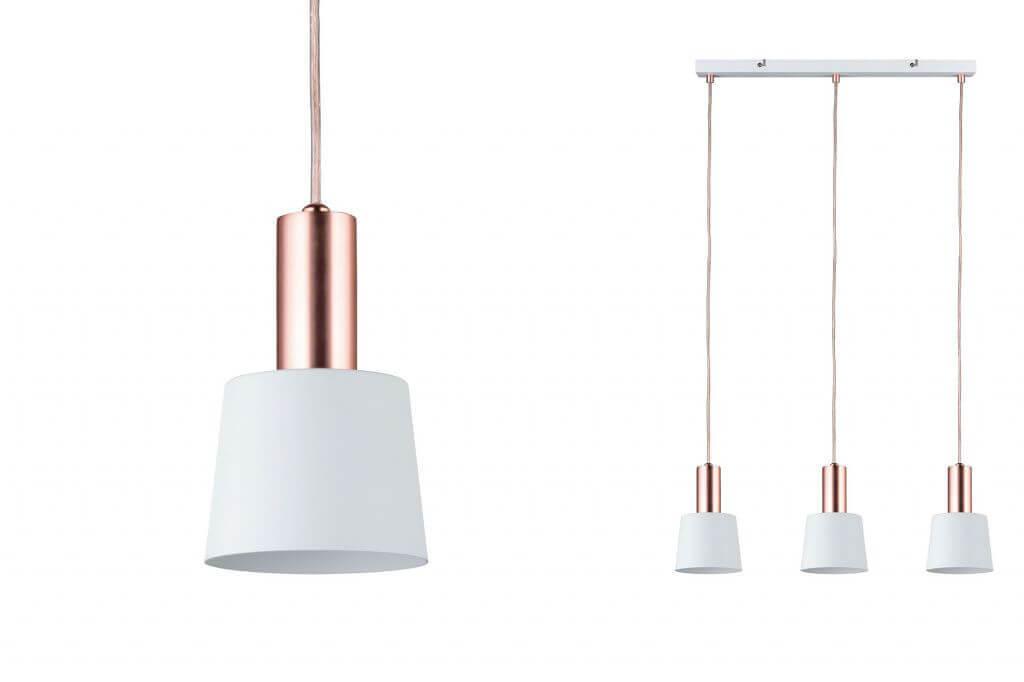 Подвесной светильник Paulmann Mare 79657 от Немецкого бренда Paulmann из коллекции Mare предназначен для установки на потолок в кухне в скандинавском стиле. Cветильник в форме конуса с металлической арматурой цвета меди и белого цвета плафонами из металла предназначен для освещения 3,3 м2.
