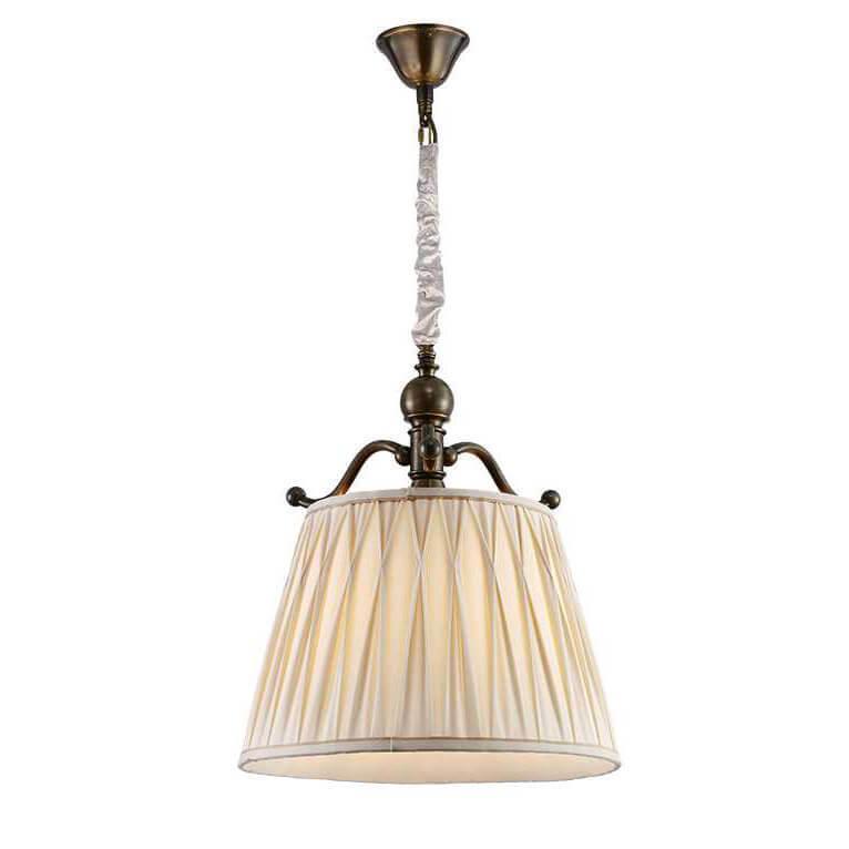 Подвесной светильник Newport 31501/S B/C М0059310 от Китайского бренда Newport из коллекции 31500 предназначен для установки на потолок в спальни в американском стиле. Cветильник в форме конуса с металлической арматурой цвета латуни и бежевого цвета плафонами из ткани предназначен для освещения 3 м2.