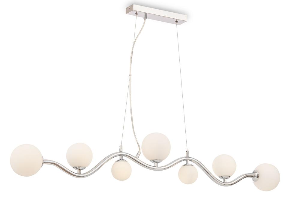Подвесной светильник Maytoni Uva MOD059PL-07CH от бренда Maytoni из коллекции Modern предназначен для установки на потолок в гостиной в . Cветильник в форме с металлической арматурой цвет хрома и белого цвета плафонами из стекла предназначен для освещения 10,9 м2.