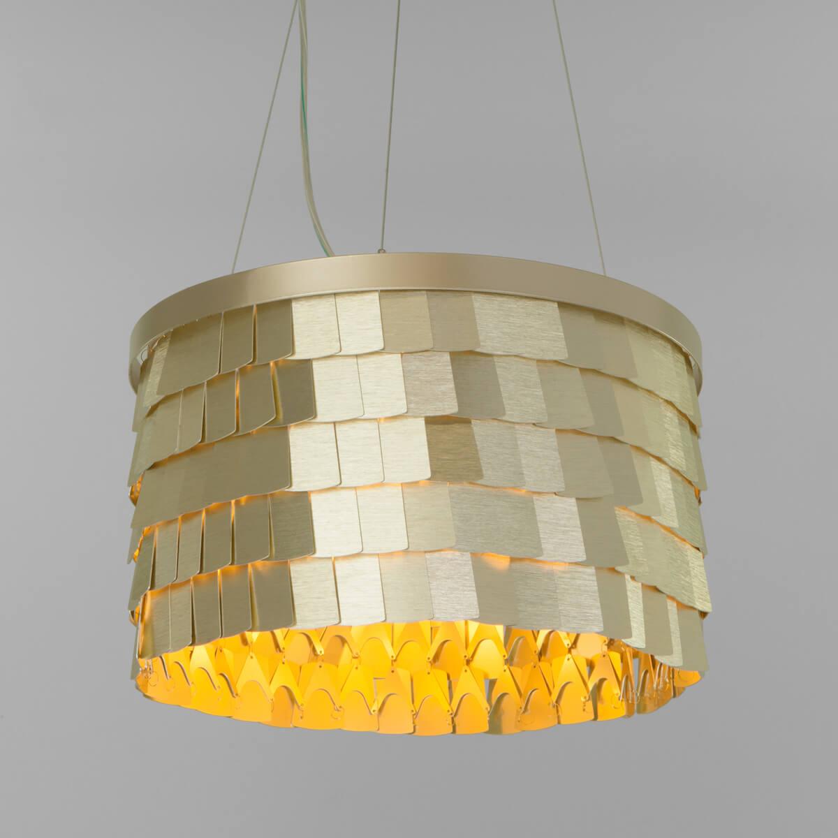 Подвесной светильник Bogates Corazza 317/6 от бренда Bogates из коллекции Corazza предназначен для установки на потолок в гостиной в дизайнерском стиле. Cветильник в форме цилиндра с металлической арматурой цвета шампунт и цвета шампунт плафонами из металла предназначен для освещения 20 м2.
