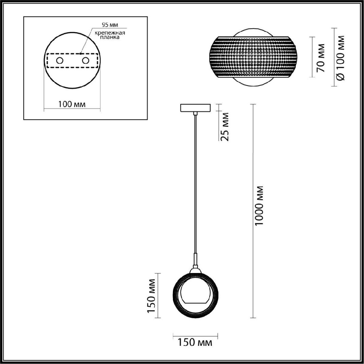 Для светильника необходима 1 лампа накаливания 40 W. Габариты изделия: высота – 1000 мм, диаметр – мм.