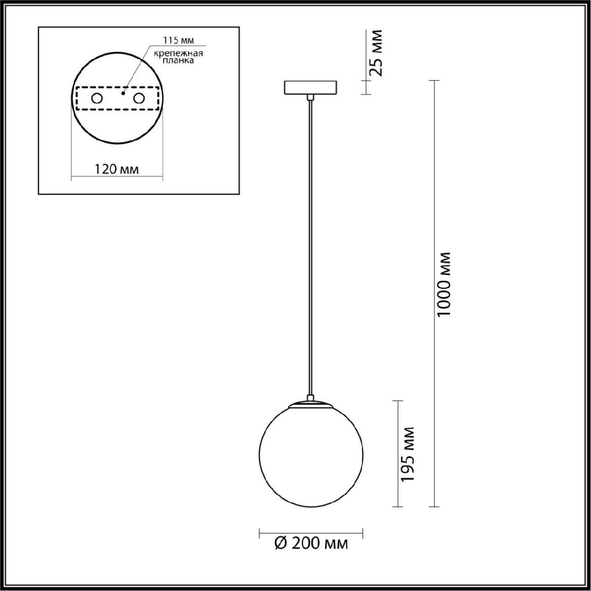Для светильника необходима 1 лампа накаливания 60 W. Габариты изделия: высота – 195 мм, диаметр – 200 мм.