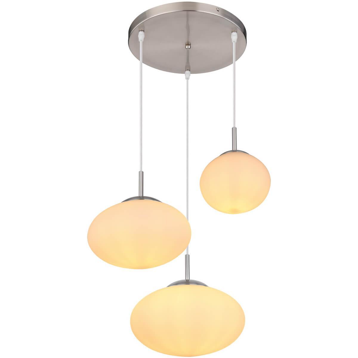 Подвесной светильник Globo Andrew 15445-3H от Китайского бренда Globo из коллекции Andrew предназначен для установки на потолок в гостиной в минималистическом стиле. Cветильник в форме овала с металлической арматурой цвета никель и белого цвета плафонами из стекла предназначен для освещения 10 м2.