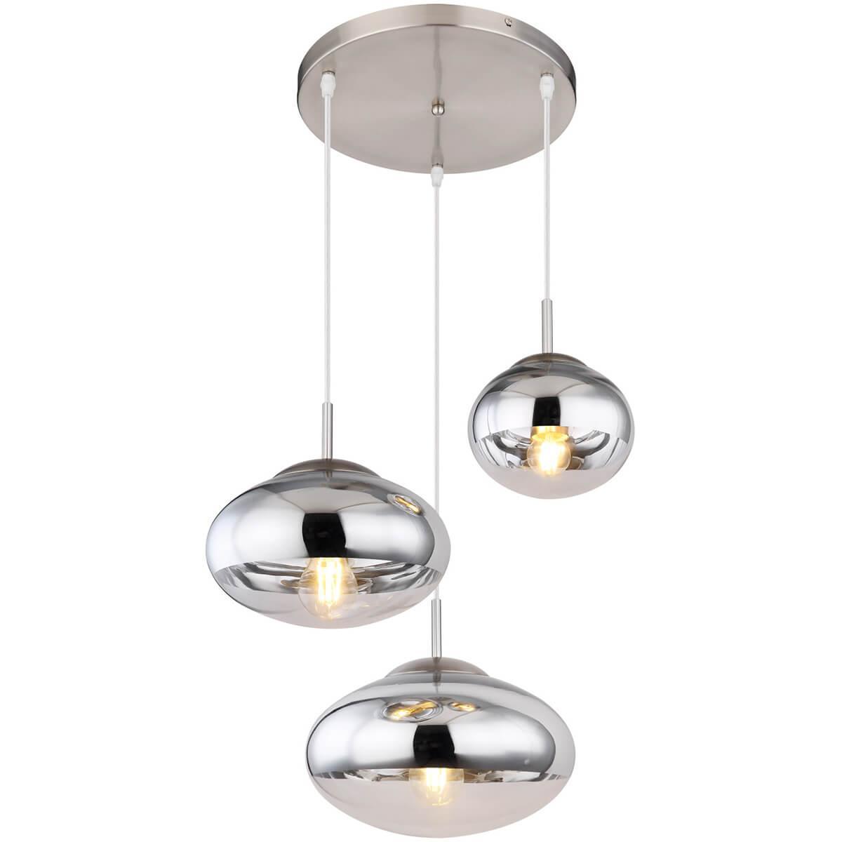Подвесной светильник Globo Andrew 15445-3HC от Китайского бренда Globo из коллекции Andrew предназначен для установки на потолок в гостиной в современном стиле. Cветильник в форме овала с металлической арматурой цвета никель и цвет хрома плафонами из стекла предназначен для освещения 10 м2.