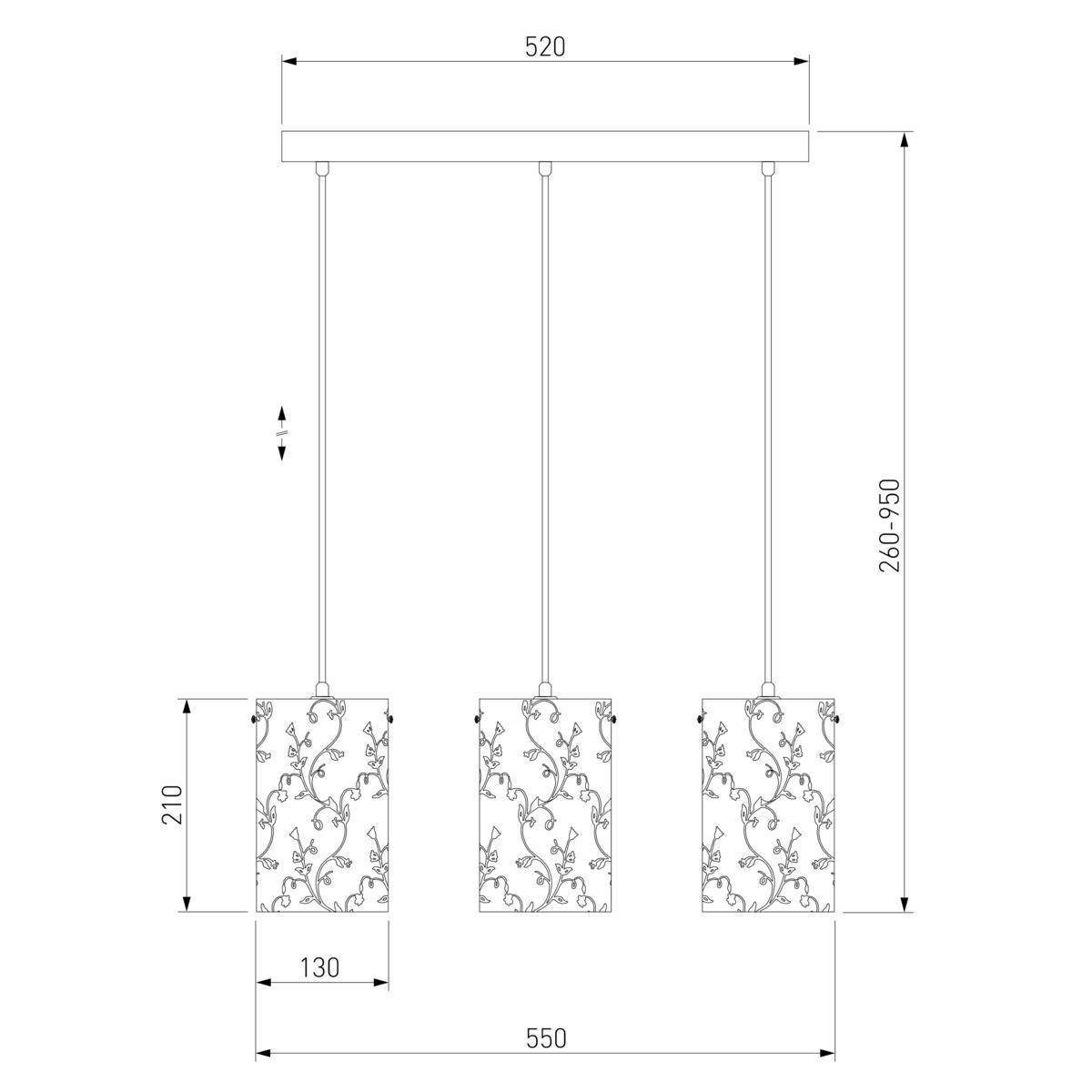 Для светильника необходима 3 лампы накаливания 60 W. Габариты изделия: высота – 950 мм, диаметр – мм.
