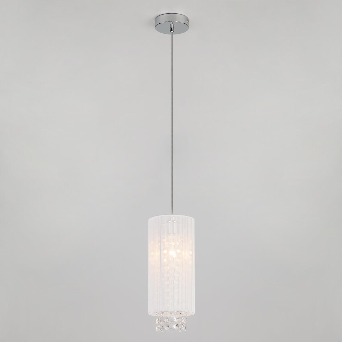 Подвесной светильник Eurosvet 1188/1 хром от Китайского бренда Eurosvet из коллекции 1188 предназначен для установки на потолок в кухне в стиле Арт-деко. Cветильник в форме цилиндра с металлической арматурой цвет хрома и белого цвета плафонами из ткани предназначен для освещения м2.