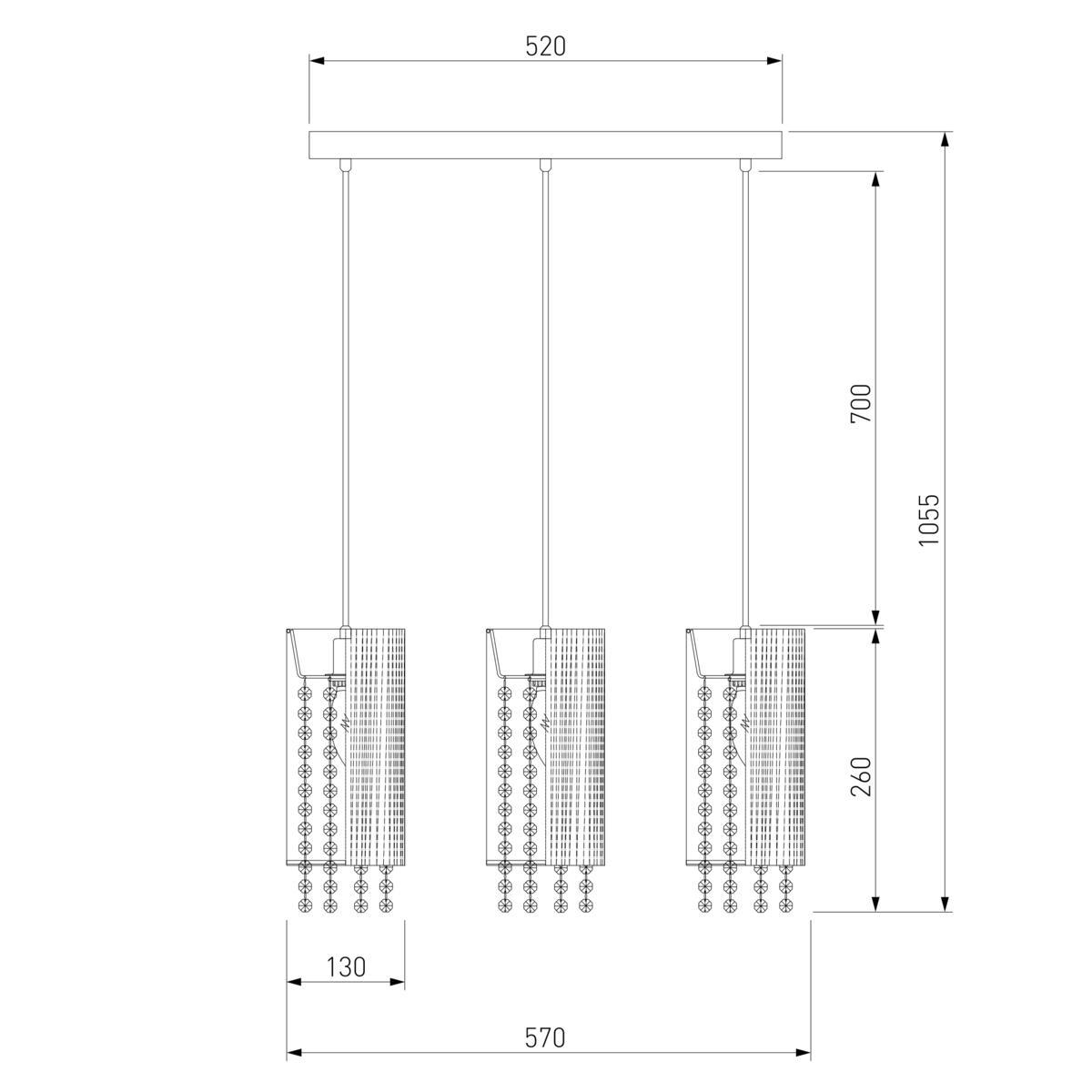 Для светильника необходима 3 лампы накаливания 60 W. Габариты изделия: высота – 1000 мм, диаметр – мм.