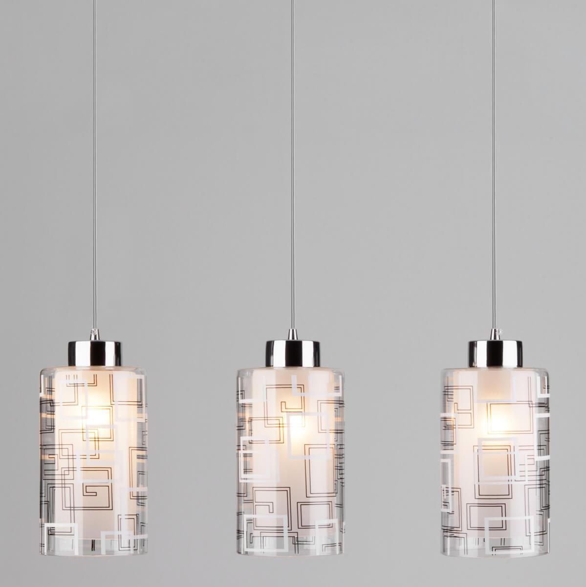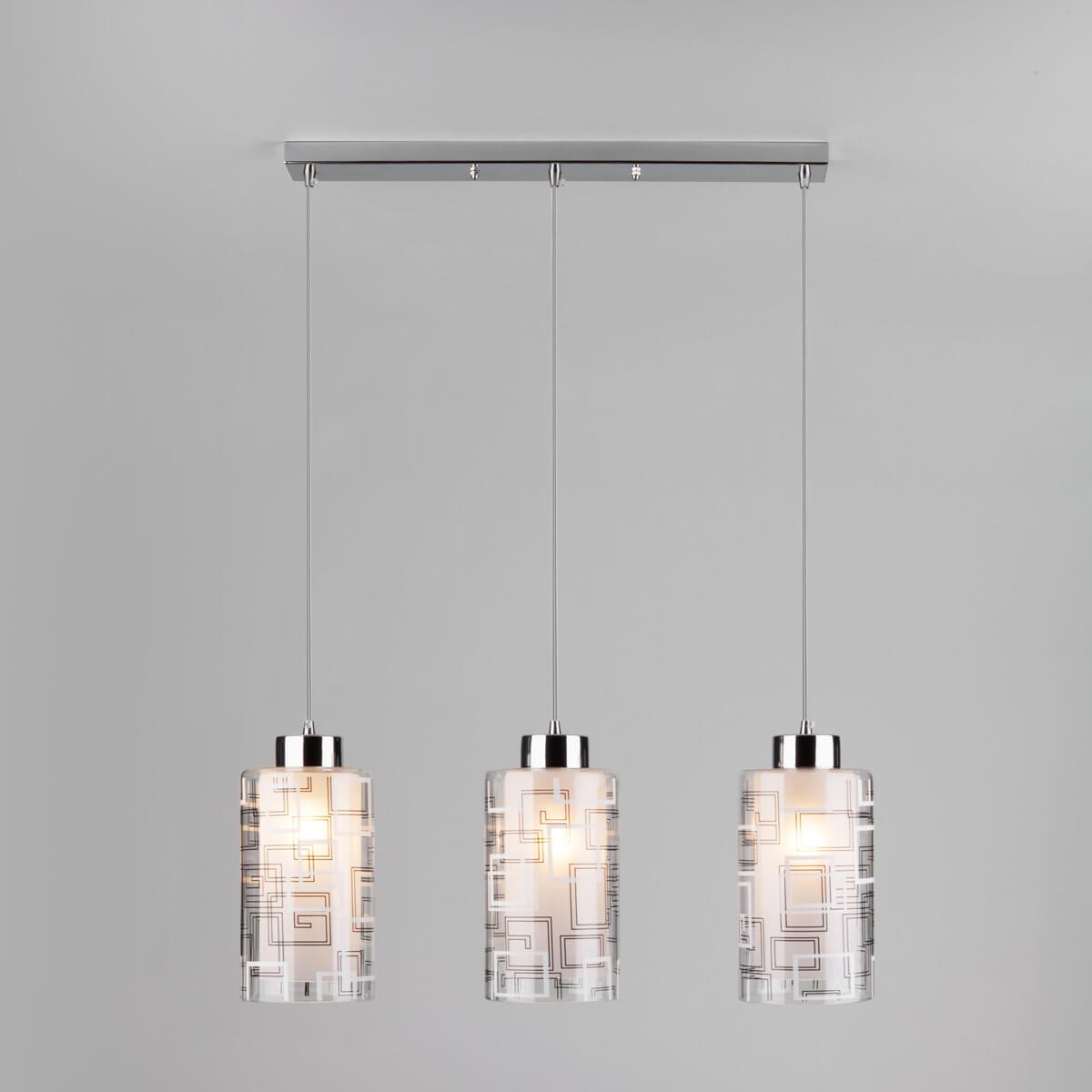 Подвесной светильник Eurosvet 50002/3 хром от Китайского бренда Eurosvet из коллекции 50002 предназначен для установки на потолок в гостиной в современном стиле. Cветильник в форме цилиндра с металлической арматурой цвет хрома и белого цвета плафонами из стекла предназначен для освещения м2.