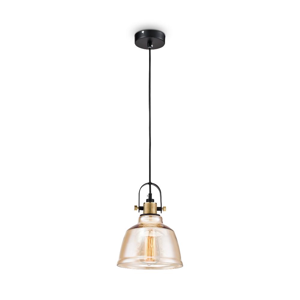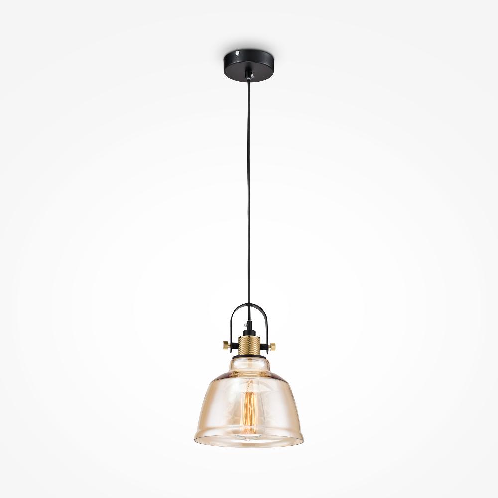 Подвесной светильник Maytoni Irving T163-11-R от бренда Maytoni из коллекции Pendant предназначен для установки на потолок в кухне в . Cветильник в форме с металлической арматурой черного цвета и янтарного цвета плафонами из стекла предназначен для освещения 2,2 м2.