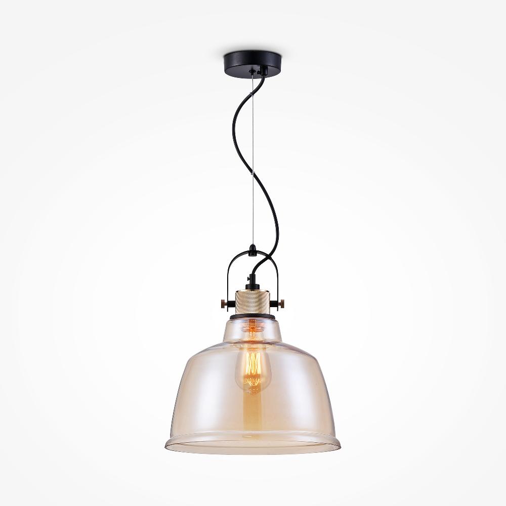 Подвесной светильник Maytoni Irving T163PL-01R от бренда Maytoni из коллекции Pendant предназначен для установки на потолок в кухне в . Cветильник в форме с металлической арматурой черного цвета и янтарного цвета плафонами из стекла предназначен для освещения 2,2 м2.