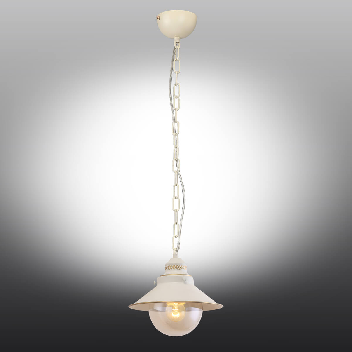 Подвесной светильник Omnilux Torri OML-50806-01 от Китайского бренда Omnilux из коллекции Torri предназначен для установки на потолок в кухне в стиле кантри. Cветильник в форме конуса с металлической арматурой кремового цвета и прозрачного цвета плафонами из стекла предназначен для освещения 3 м2.