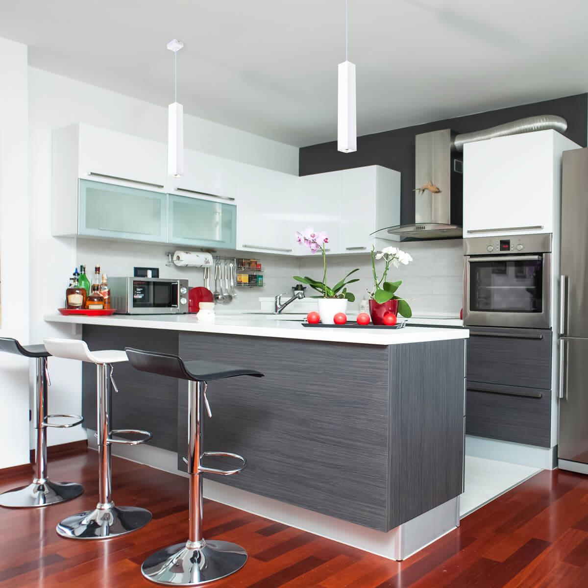 Подвесной светильник Eurosvet 50154/1 LED белый от Китайского бренда Eurosvet из коллекции Cant предназначен для установки на потолок в кухне в современном стиле. Cветильник в форме прямоугольника с металлической арматурой белого цвета и белого цвета плафонами из металла предназначен для освещения м2.