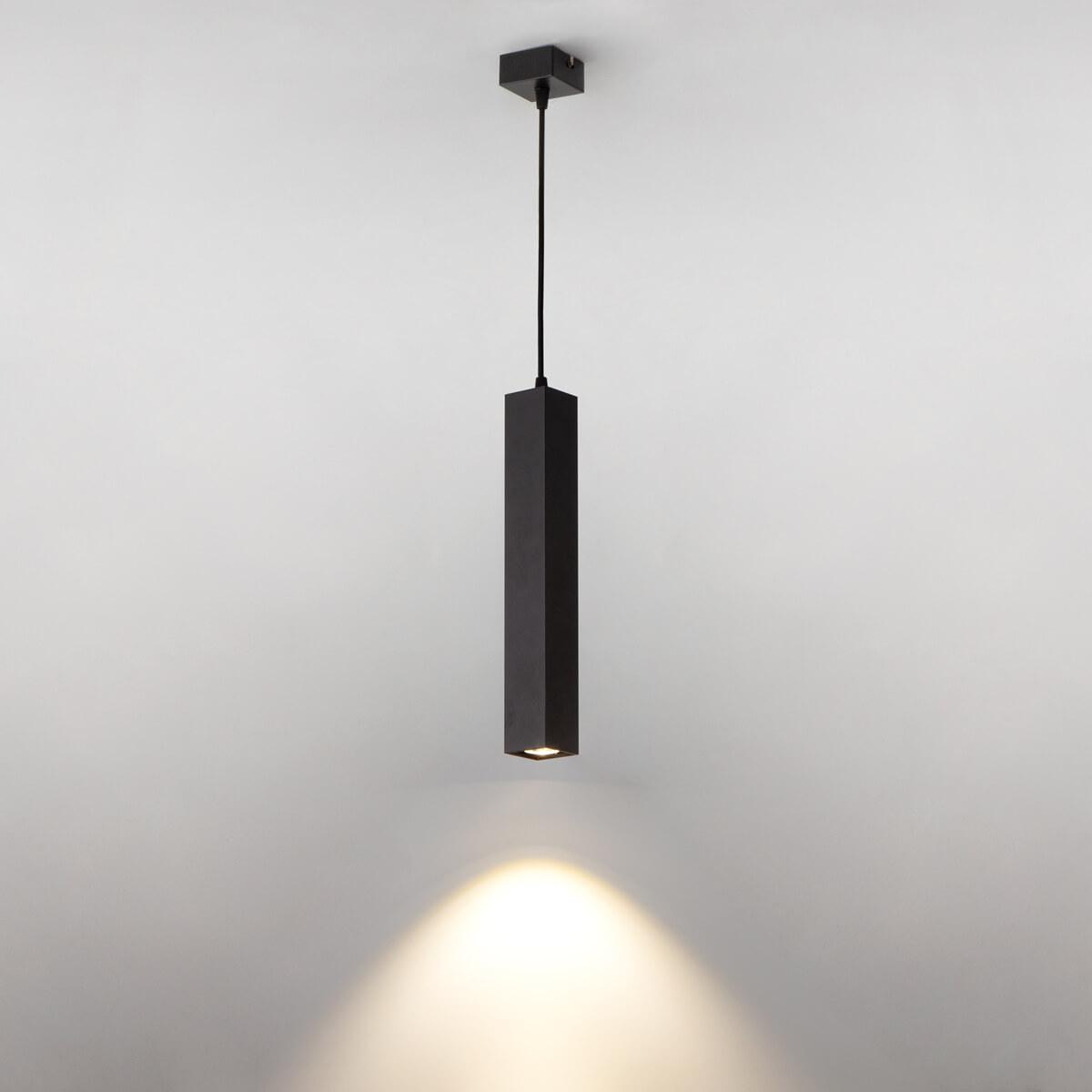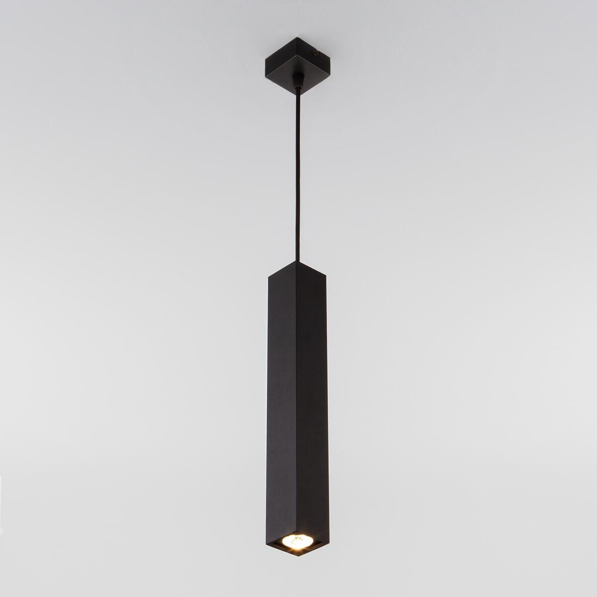 Подвесной светильник Eurosvet 50154/1 LED черный от Китайского бренда Eurosvet из коллекции Cant предназначен для установки на потолок в кухне в современном стиле. Cветильник в форме прямоугольника с металлической арматурой черного цвета и черного цвета плафонами из металла предназначен для освещения м2.