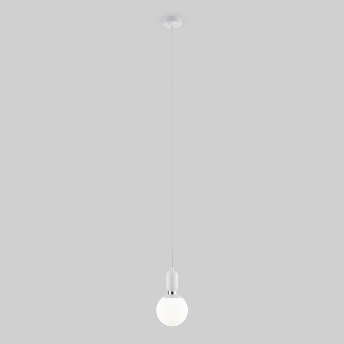 Подвесной светильник Eurosvet 50158/1 белый от Китайского бренда Eurosvet из коллекции Bubble Long предназначен для установки на потолок в кухне в скандинавском стиле. Cветильник в форме круга с металлической арматурой белого цвета и кремового цвета плафонами из стекла предназначен для освещения м2.