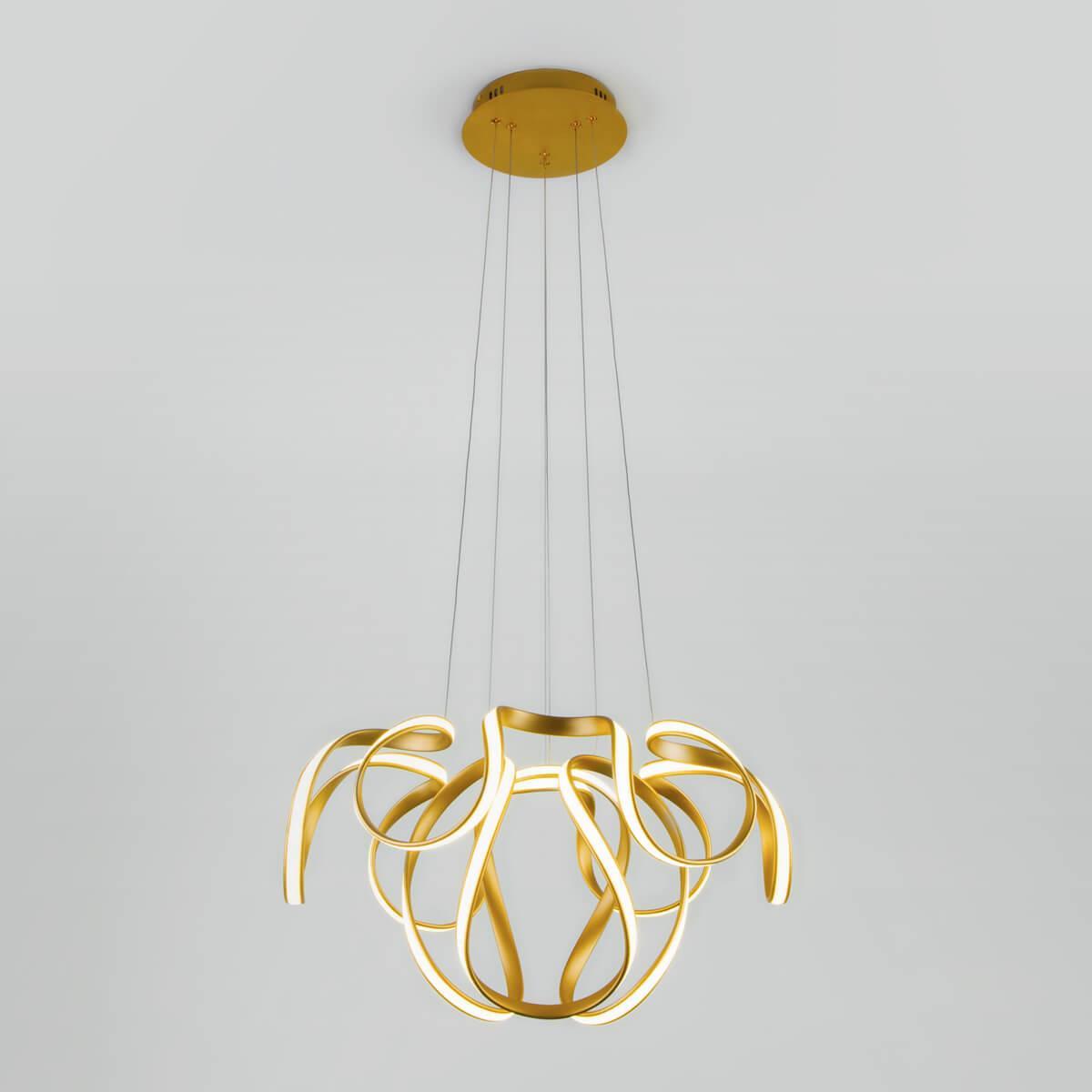 Подвесной светильник Eurosvet 90138/2 золото от Китайского бренда Eurosvet из коллекции Alstroemeria предназначен для установки на потолок в кухне в хай-тек стиле. Cветильник в форме декоративного с металлической арматурой и плафонами из пластика предназначен для освещения м2.