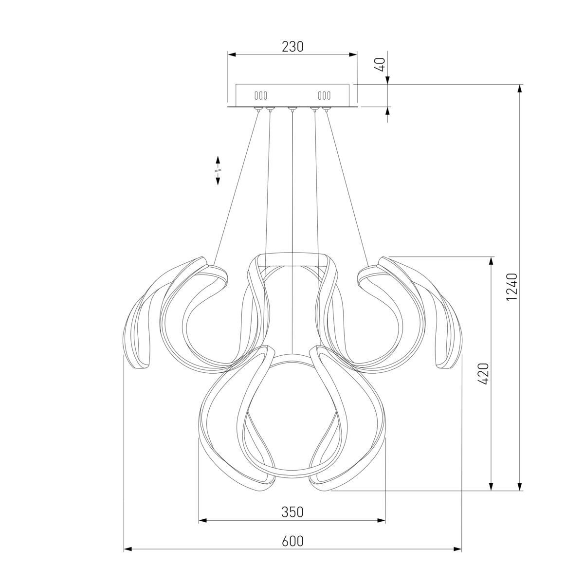 Для светильника необходима светодиодных ламп 96 W. Габариты изделия: высота – 1240 мм, диаметр – 600 мм.