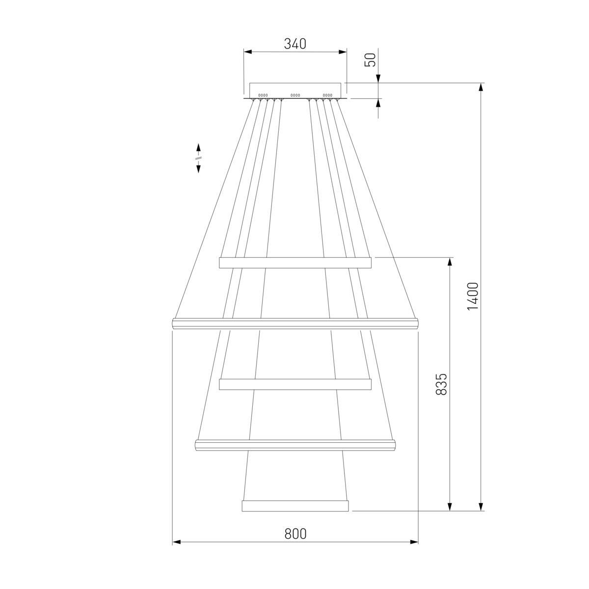 Для светильника необходима светодиодных ламп 145 W. Габариты изделия: высота – 900 мм, диаметр – 800 мм.