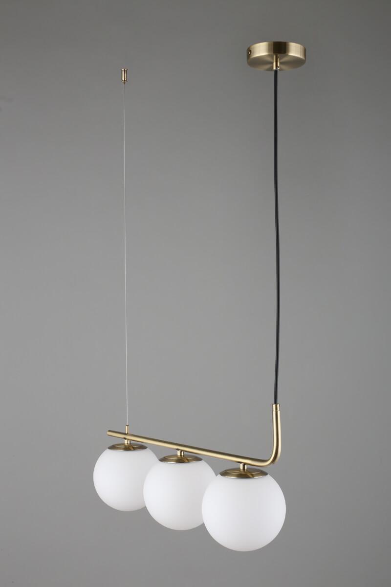 Подвесной светильник Omnilux Avetrana OML-66613-03 от Китайского бренда Omnilux из коллекции Avetrana предназначен для установки на потолок в прихожей в стиле модерн. Cветильник в форме шара с металлической арматурой бронзового цвета и белого цвета плафонами из стекла предназначен для освещения 7 м2.
