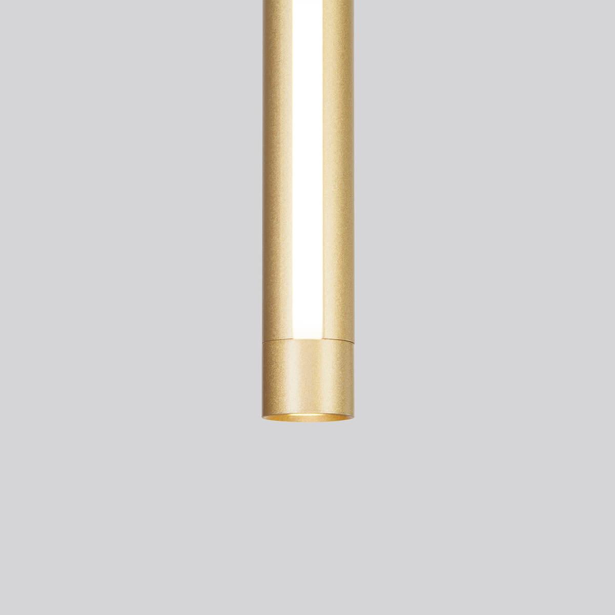 Подвесной светодиодный светильник Eurosvet Strong 50189/1 LED матовое золото от Китайского бренда Eurosvet из коллекции Strong предназначен для установки на потолок в кухне в хай-тек стиле. Cветильник в форме цилиндра с металлической арматурой залотого цвета и залотого цвета плафонами из металла предназначен для освещения м2.