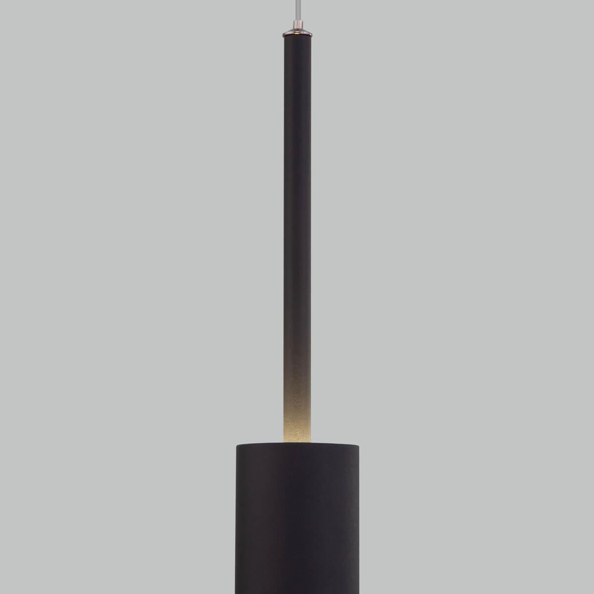 Подвесной светодиодный светильник Eurosvet Dante 50203/1 черный от Китайского бренда Eurosvet из коллекции Dante предназначен для установки на потолок в гостиной в минималистическом стиле. Cветильник в форме цилиндра с металлической арматурой черного цвета и черного цвета плафонами из металла предназначен для освещения м2.