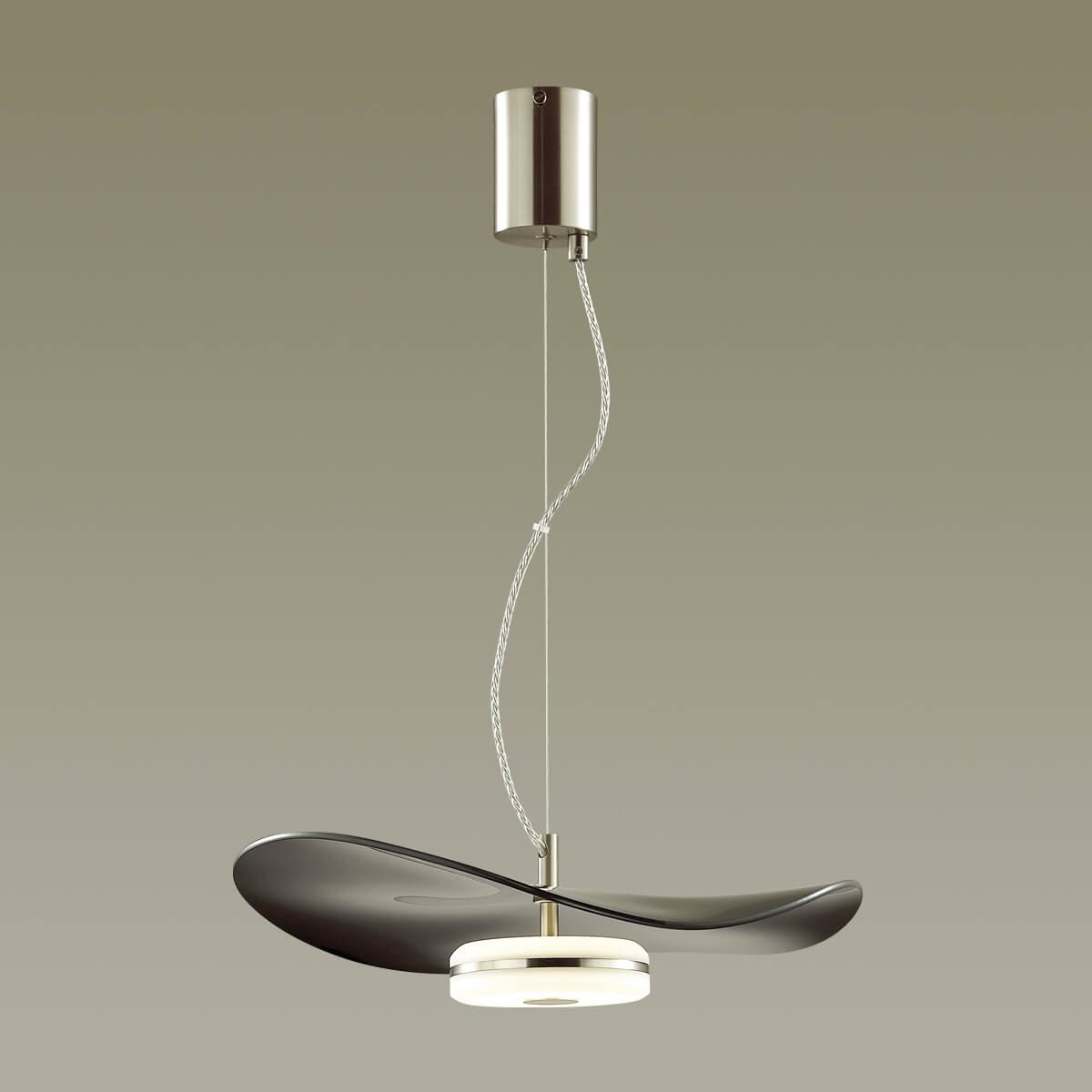 Подвесной светодиодный светильник Odeon Light Fluent 4859/13L от Итальянского бренда Odeon Light из коллекции Fluent предназначен для установки на потолок в прихожей в стиле модерн. Cветильник в форме круга с металлической арматурой цвета никель и черного цвета плафонами из стекла предназначен для освещения 6 м2.