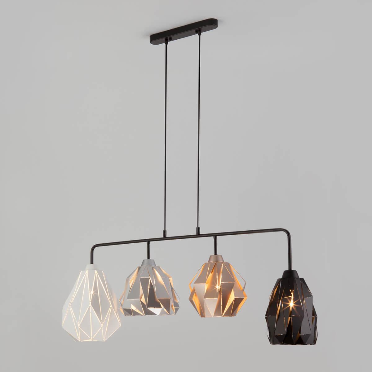 Подвесной светильник Eurosvet Moire 50090/4 черный от Китайского бренда Eurosvet из коллекции Moire предназначен для установки на потолок в кухне в стиле модерн. Cветильник в форме декоративного с металлической арматурой черного цвета и разноцветного цвета плафонами из металла предназначен для освещения 8 м2.