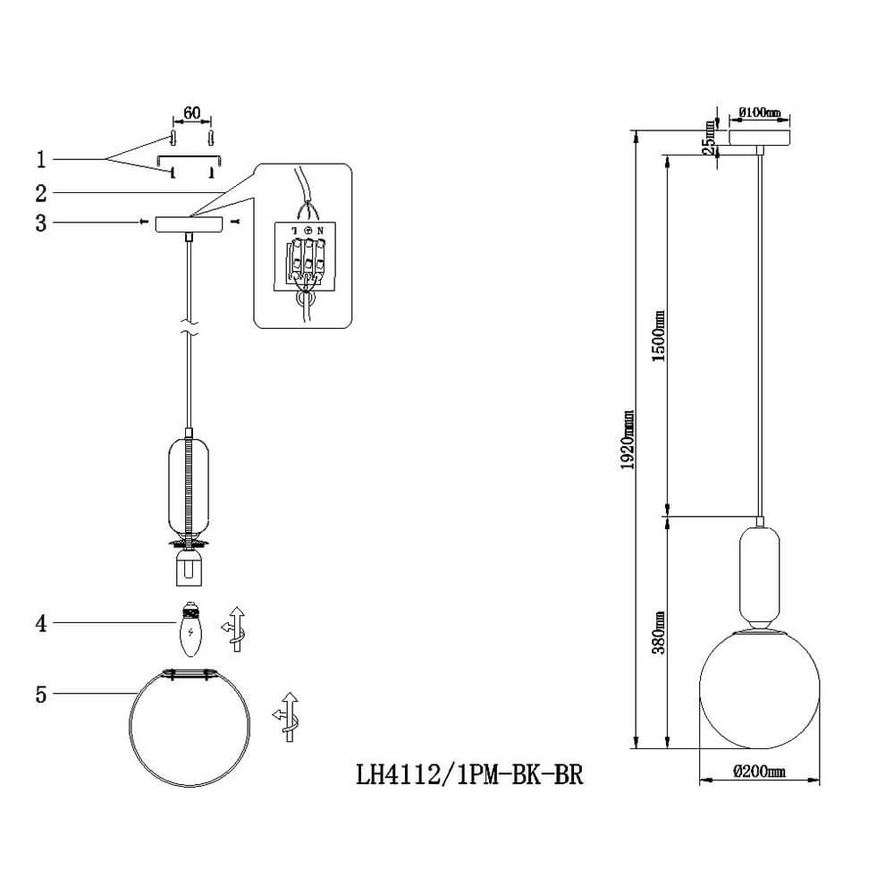Подвесной светильник Lumien Hall Эрмин LH4112/1PM-BK-BR