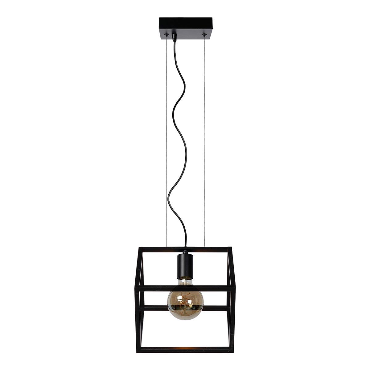 Подвесной светильник Lucide Fabian 00425/01/30 от Китайского бренда Lucide из коллекции Fabian предназначен для установки на потолок в прихожей в лофт стиле. Cветильник в форме квадрата с металлической арматурой черного цвета и черного цвета плафонами из металла предназначен для освещения 2 м2.