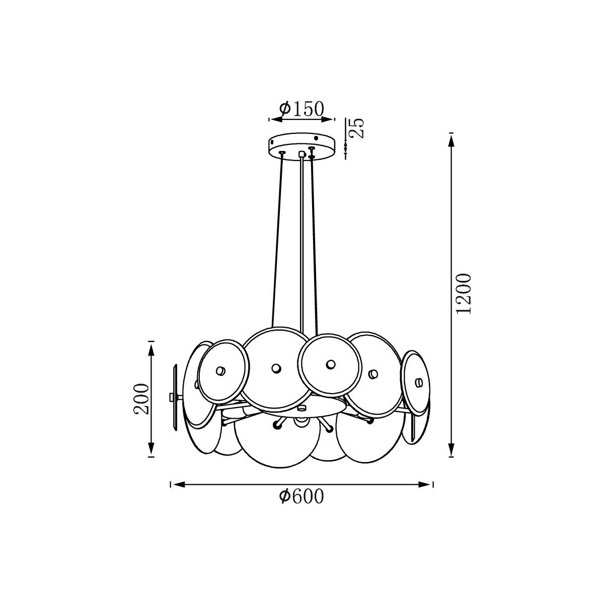 Для светильника необходима 7 ламп накаливания 40 W. Габариты изделия: высота – 1200 мм, диаметр – 600 мм.