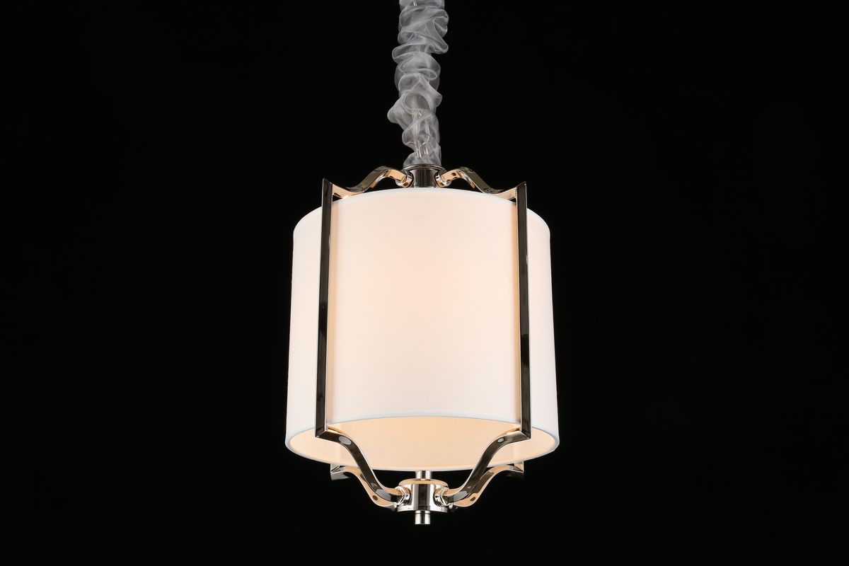 Подвесной светильник Aployt Kamila APL.727.06.01 от бренда Aployt из коллекции Kamila предназначен для установки на потолок в спальни в стиле Арт-деко. Cветильник в форме цилиндра с металлической арматурой цвет хрома и белого цвета плафонами из ткани предназначен для освещения 3 м2.