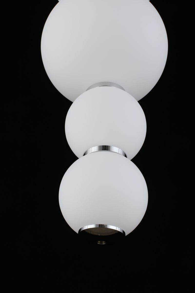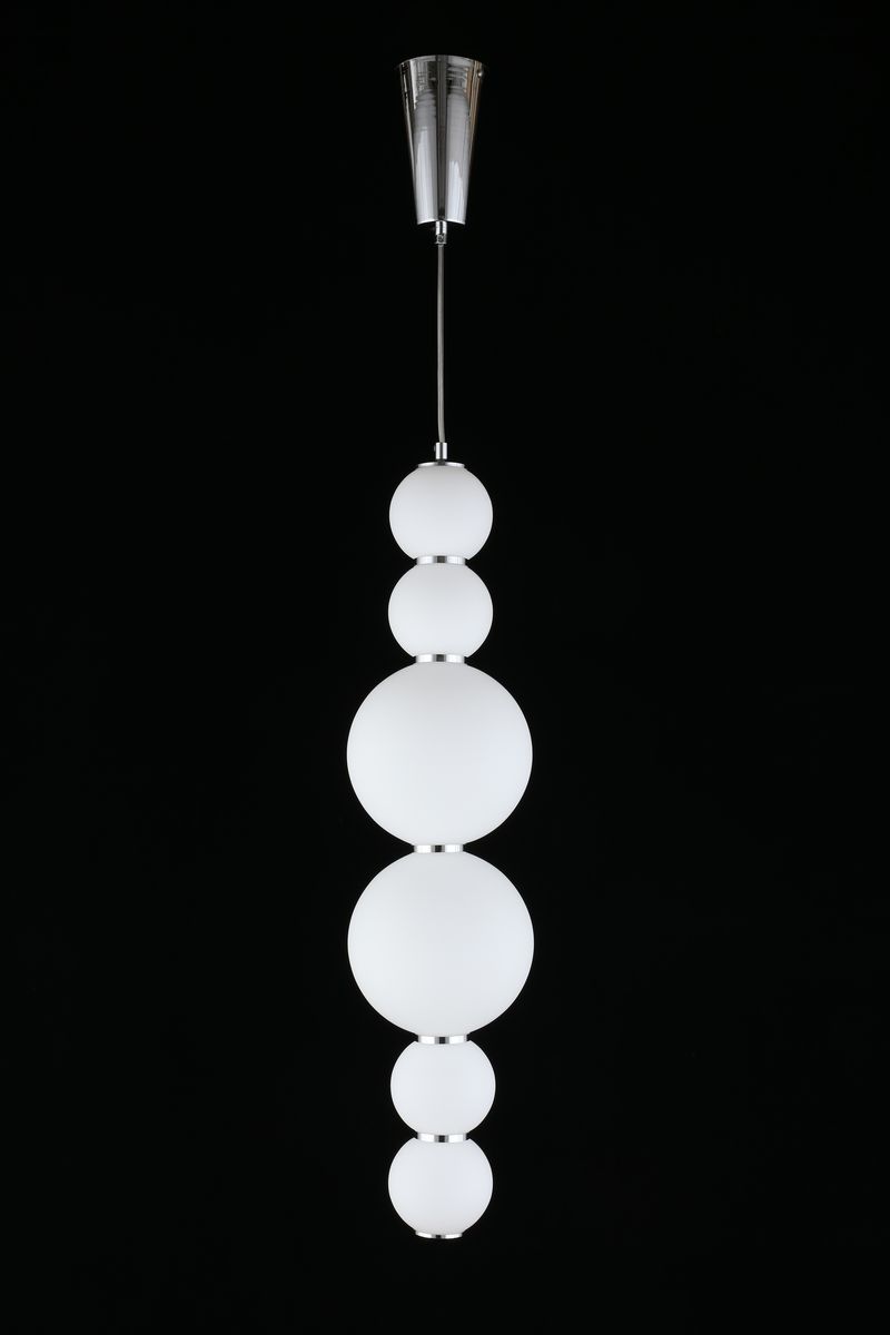 Подвесной светодиодный светильник Aployt Arabel APL.009.06.24 от бренда Aployt из коллекции Arabel предназначен для установки на потолок в кафе и ресторанах в современном стиле. Cветильник в форме шара с металлической арматурой цвет хрома и белого цвета плафонами из стекла предназначен для освещения м2.