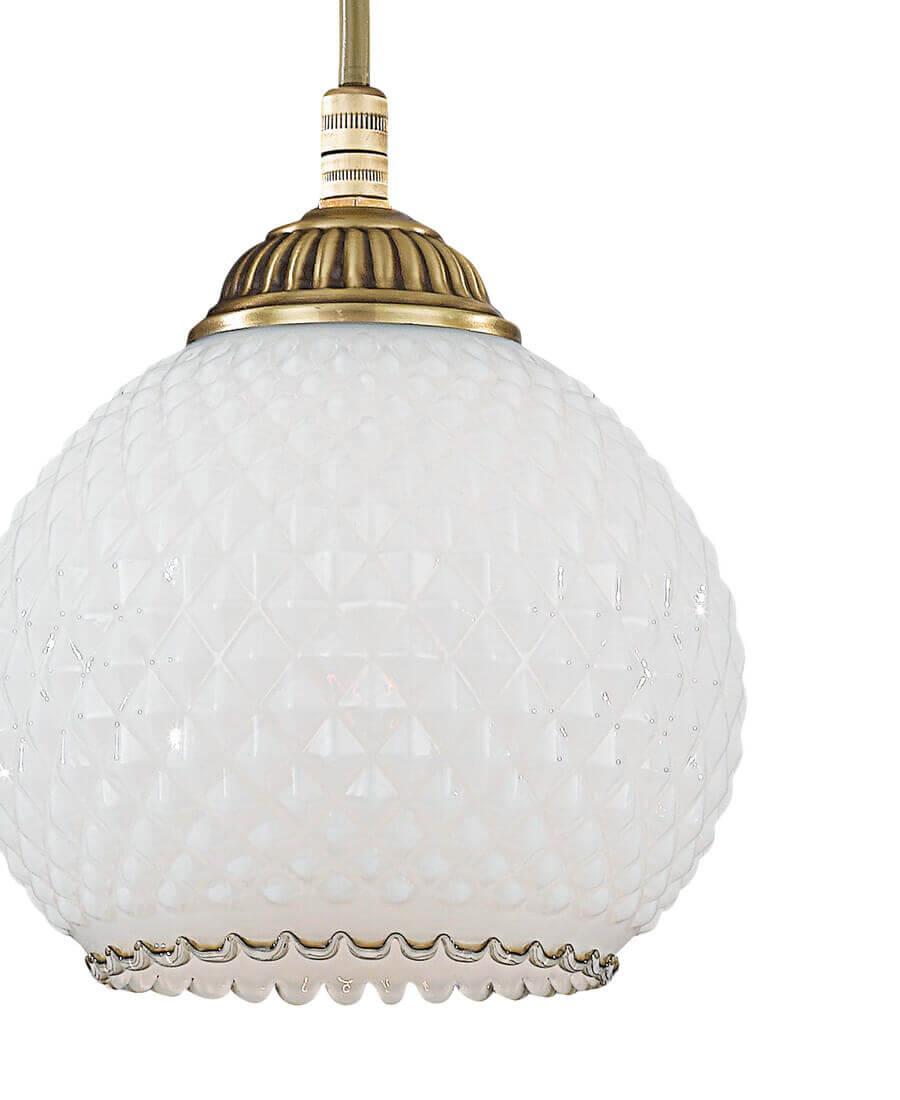 Подвесной светильник Reccagni Angelo L.8600/14 от Итальянского бренда из коллекции rosa 8600 предназначен для установки на потолок в кухне в классиком стиле. Cветильник в форме с латунной арматурой цвета античной бронзы и белого цвета плафонами из стекла предназначен для освещения 3 м2.