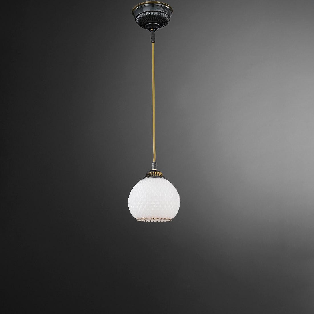 Подвесной светильник Reccagni Angelo L.8610/14 от Итальянского бренда из коллекции rosa 8610 предназначен для установки на потолок в кухне в классиком стиле. Cветильник в форме с латунной арматурой бронзового цвета и белого цвета плафонами из стекла предназначен для освещения 3 м2.