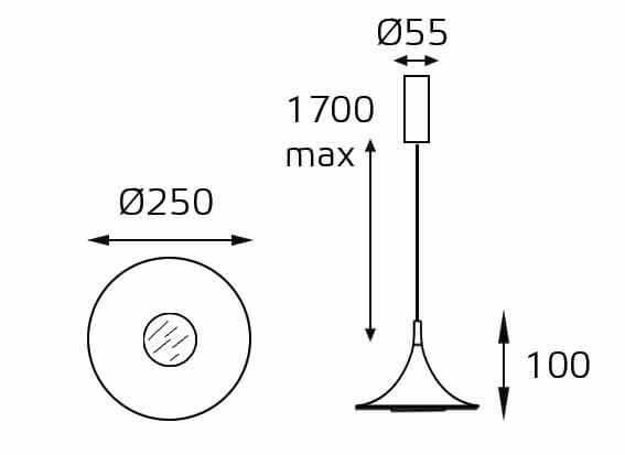Для светильника необходима светодиодных ламп 15 W. Габариты изделия: высота – 100 мм, диаметр – 250 мм.
