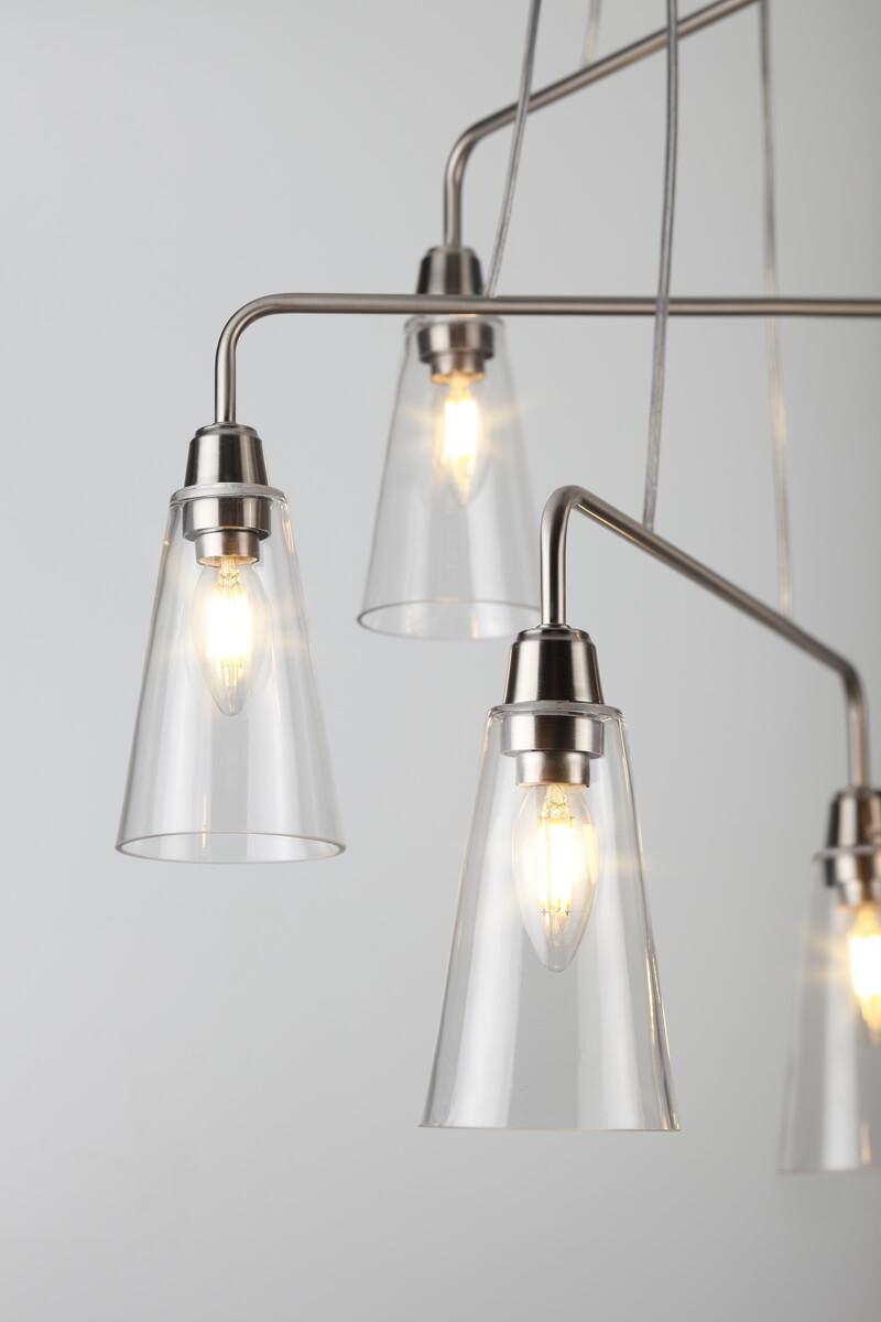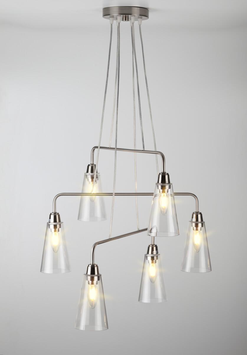 Подвесной светильник Rivoli Picco 5038-206 Б0044365 от Итальянского бренда Rivoli из коллекции Picco предназначен для установки на потолок в спальни в современном стиле. Cветильник в форме конуса с металлической арматурой цвета никель и прозрачного цвета плафонами из стекла предназначен для освещения 18 м2.