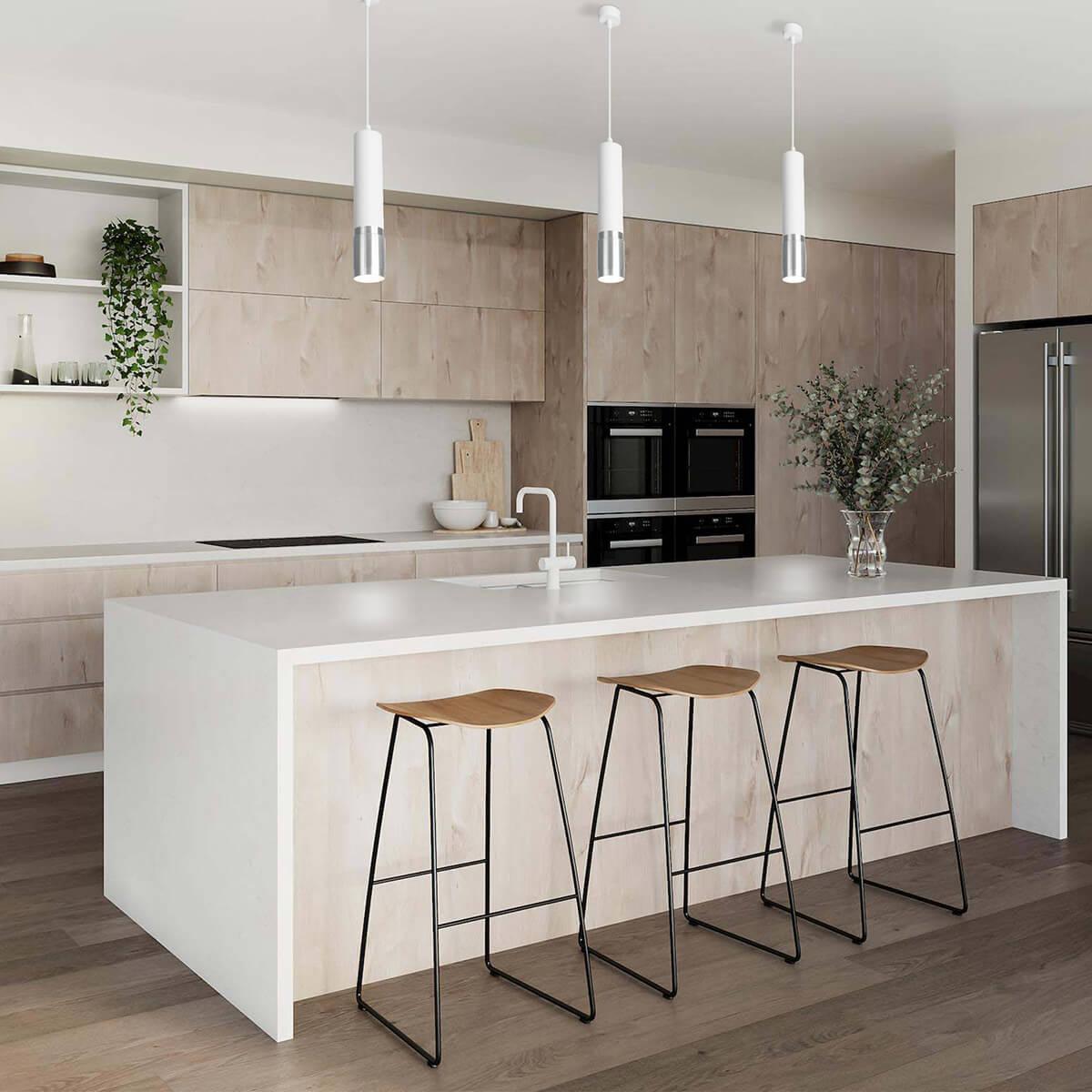 Подвесной светильник Eurosvet Tony DLN108 GU10 от Китайского бренда из коллекции Tony предназначен для установки на потолок в кухне в стиле модерн. Cветильник в форме с металлической арматурой белого цвета и серебрянного цвета плафонами из металла предназначен для освещения 3 м2.