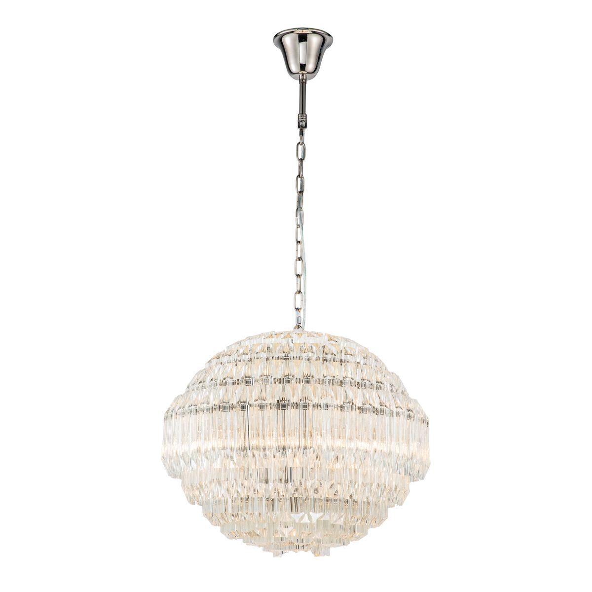 Подвесной светильник iLamp Manhattan 103D-10 Nickel от Китайского бренда из коллекции Manhattan предназначен для установки на потолок в гостиной в американском стиле. Cветильник в форме с металлической арматурой цвета никель и прозрачного цвета плафонами из хрусталя предназначен для освещения 45 м2.
