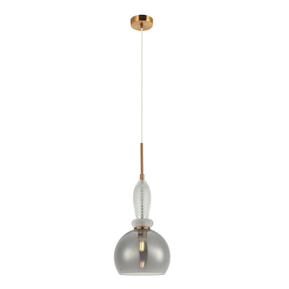 Подвесной светильник Aployt Kristel APL.304.06.01 от бренда из коллекции Kristel предназначен для установки на потолок в кухне в ретро стиле. Cветильник в форме с металлической арматурой цвета латуни и дымчатого цвета плафонами из стекла предназначен для освещения м2.