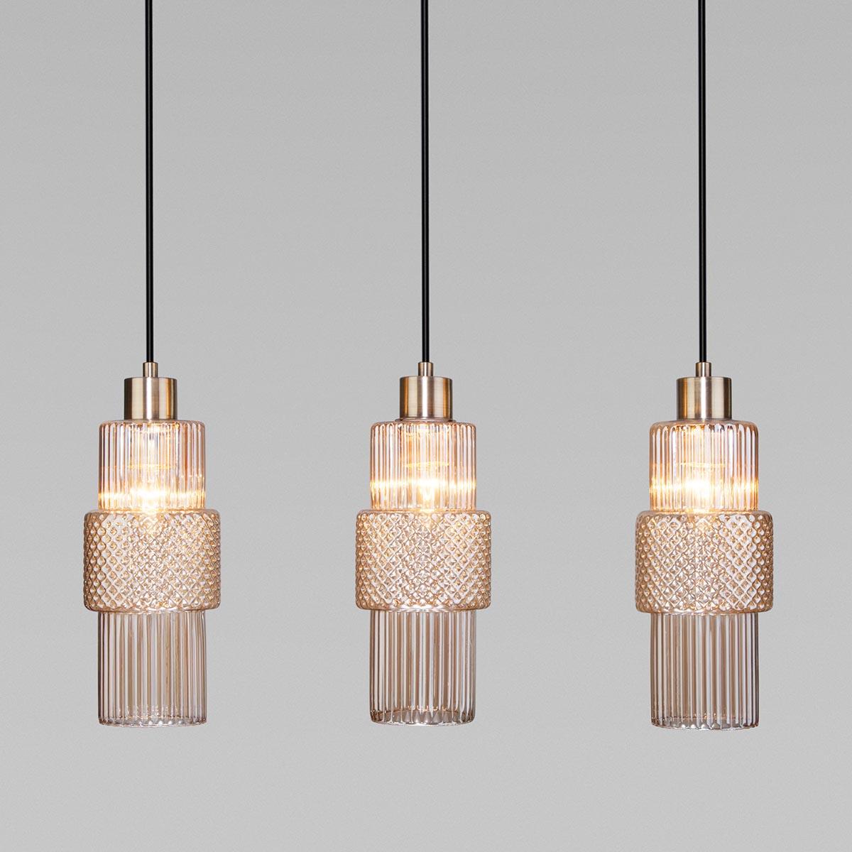 Подвесной светильник Eurosvet Soho 50209/3 бронза от Китайского бренда из коллекции Soho предназначен для установки на потолок в кухне в ретро стиле. Cветильник в форме с металлической арматурой бронзового цвета и янтарного цвета плафонами из стекла предназначен для освещения м2.