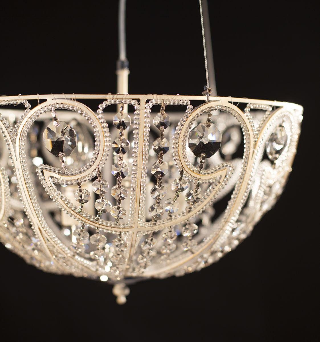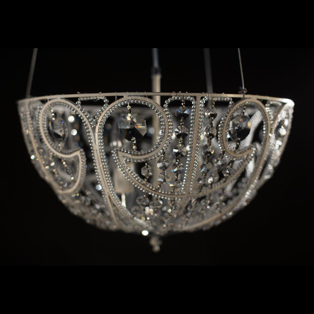 Для светильника необходима 5 ламп накаливания 40 W. Габариты изделия: высота – 300 мм, диаметр – 430 мм.