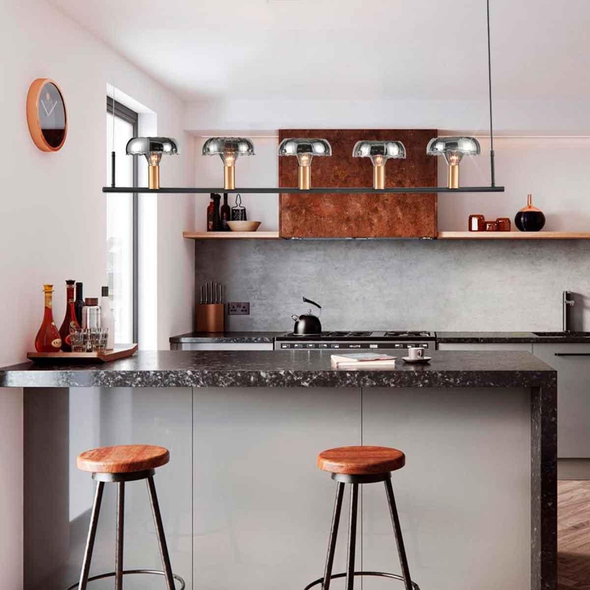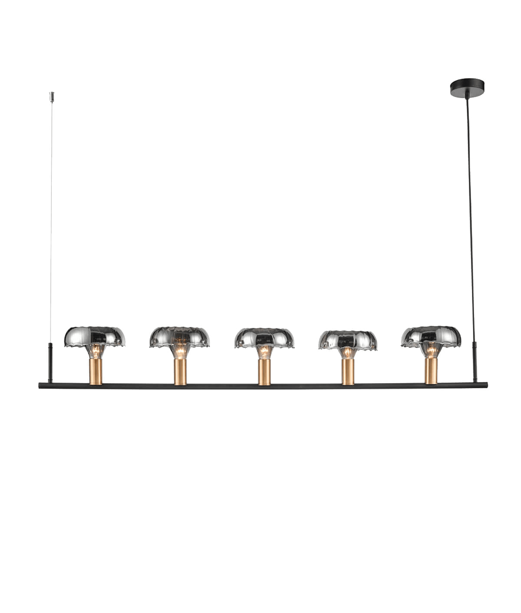 Подвесной светильник Vele Luce Olivia VL5642P05 от Китайского бренда из коллекции Olivia предназначен для установки на потолок в современном стиле. Cветильник в форме с металлической арматурой черного цвета и дымчатого цвета плафонами из стекла предназначен для освещения 12 м2.