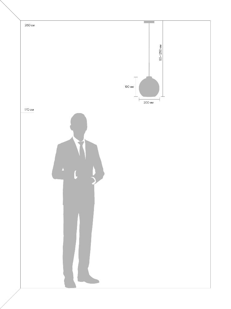 Для светильника необходима 1 лампа накаливания 60 W. Габариты изделия: высота – 930 мм, диаметр – 200 мм.