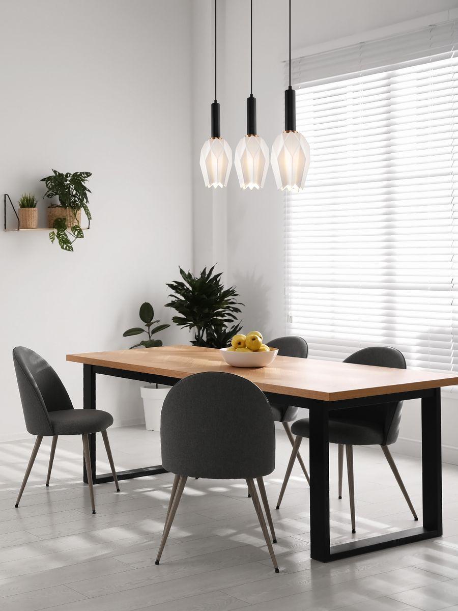 Подвесной светильник Freya Delta FR9001PL-03B от Китайского бренда из коллекции Delta предназначен для установки на потолок в кухне в скандинавском стиле. Cветильник в форме с металлической арматурой черного цвета и белого цвета плафонами из керамики предназначен для освещения м2.