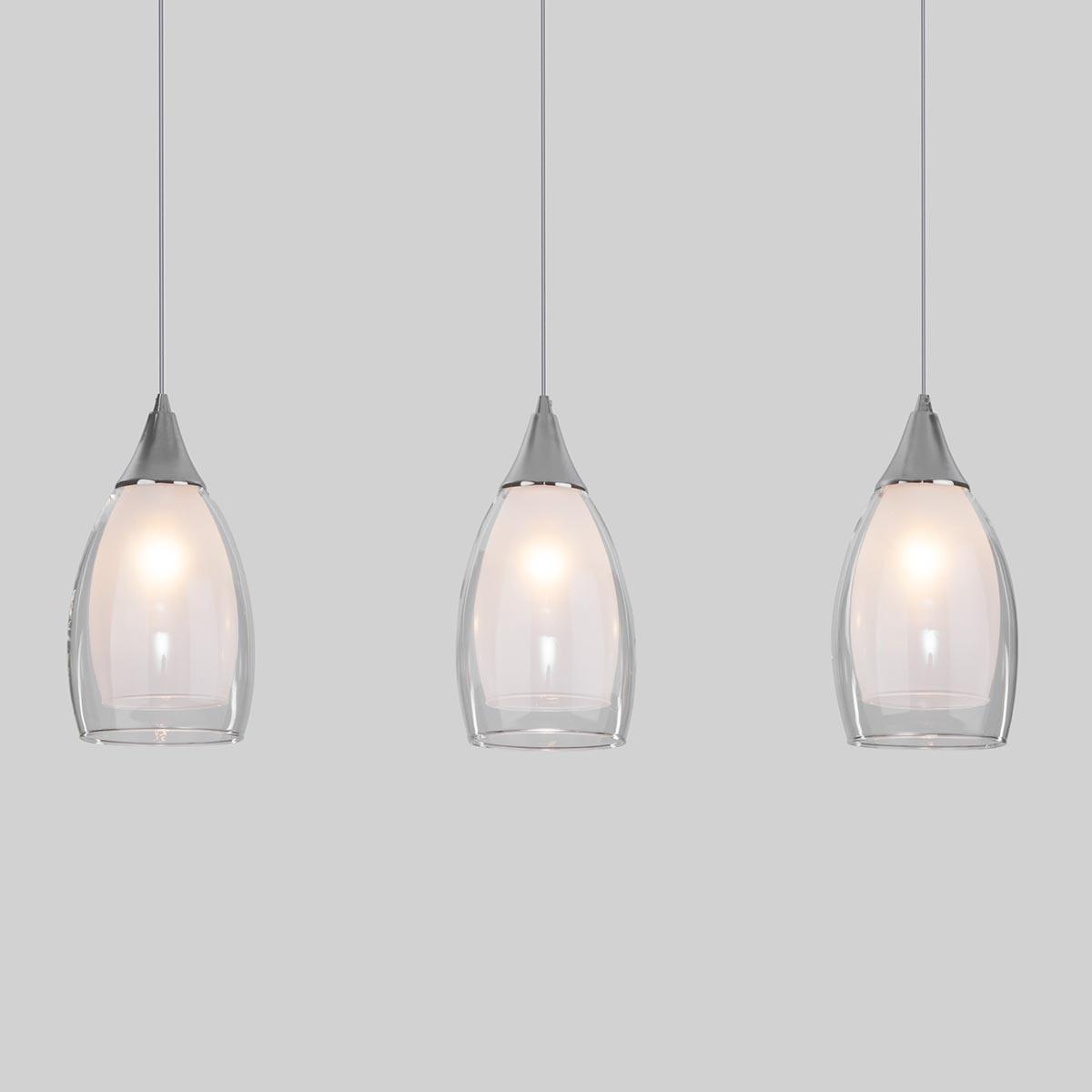 Подвесной светильник Eurosvet Cosmic 50285/3 хром от Китайского бренда из коллекции Cosmic предназначен для установки на потолок в кухне в современном стиле. Cветильник в форме с металлической арматурой цвет хрома и прозрачного цвета плафонами из стекла предназначен для освещения 8 м2.