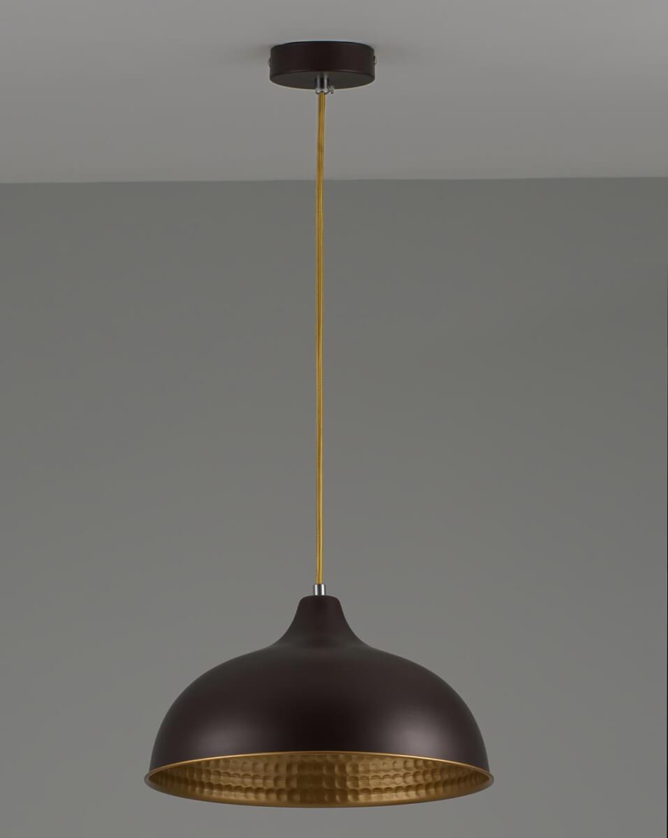 Подвесной светильник Moderli Sega V2760-1P от Китайского бренда из коллекции Sega предназначен для установки на потолок в кафе и ресторанах в стиле кантри. Cветильник в форме с металлической арматурой кофейного цвета и кофейного цвета плафонами из металла предназначен для освещения 3 м2.
