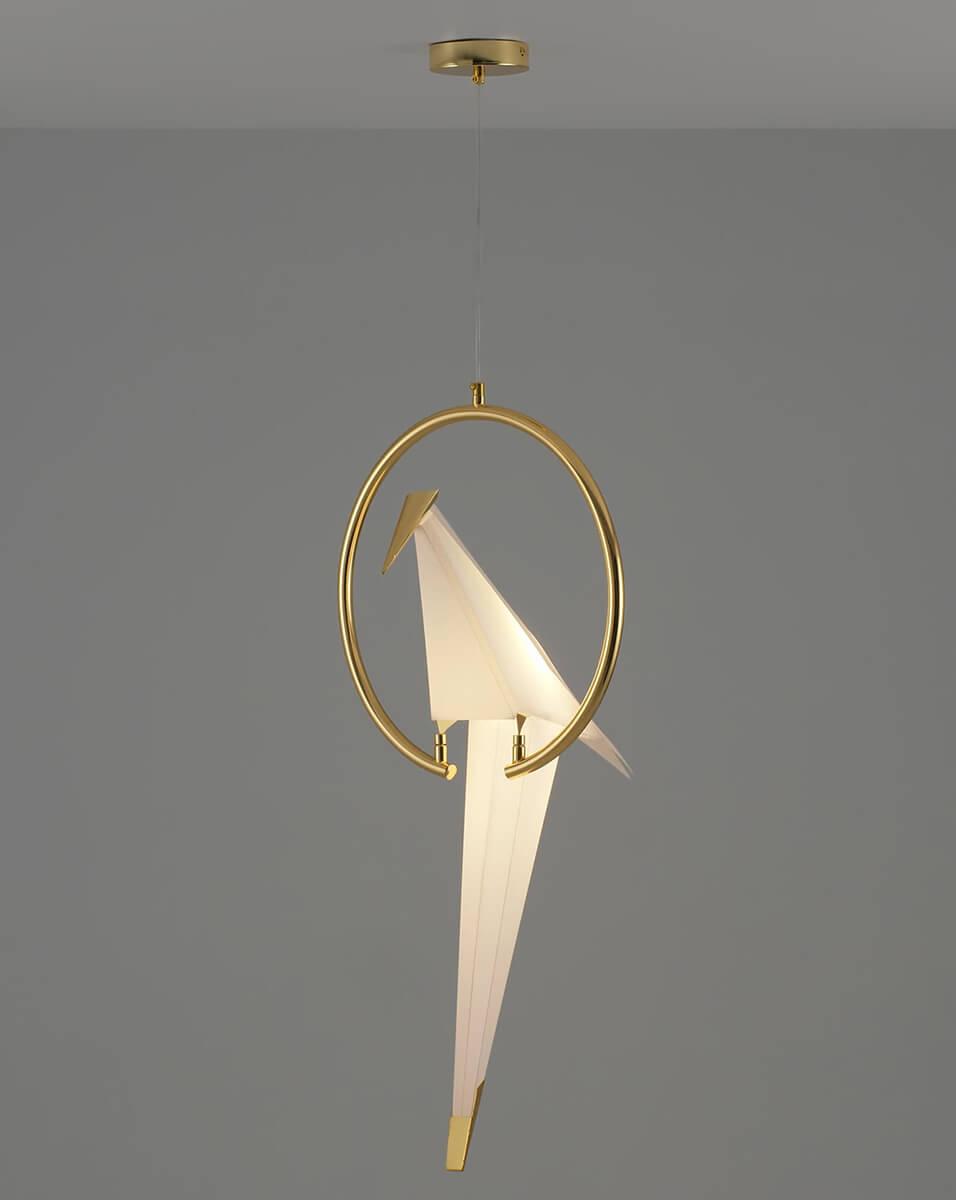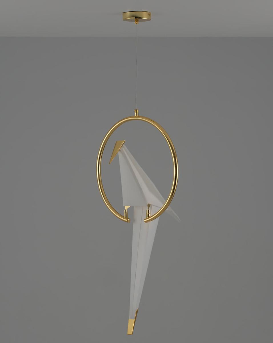 Подвесной светодиодный светильник Moderli Birds V3071- 1PL от Китайского бренда из коллекции Birds предназначен для установки на потолок в спальни в хай-тек стиле. Cветильник в форме с металлической арматурой залотого цвета и белого цвета плафонами из предназначен для освещения 6 м2.