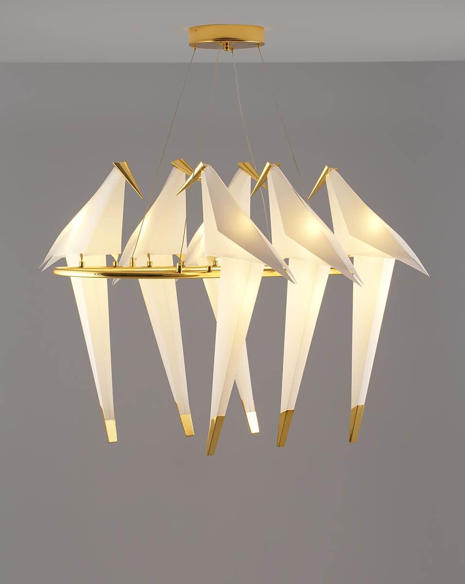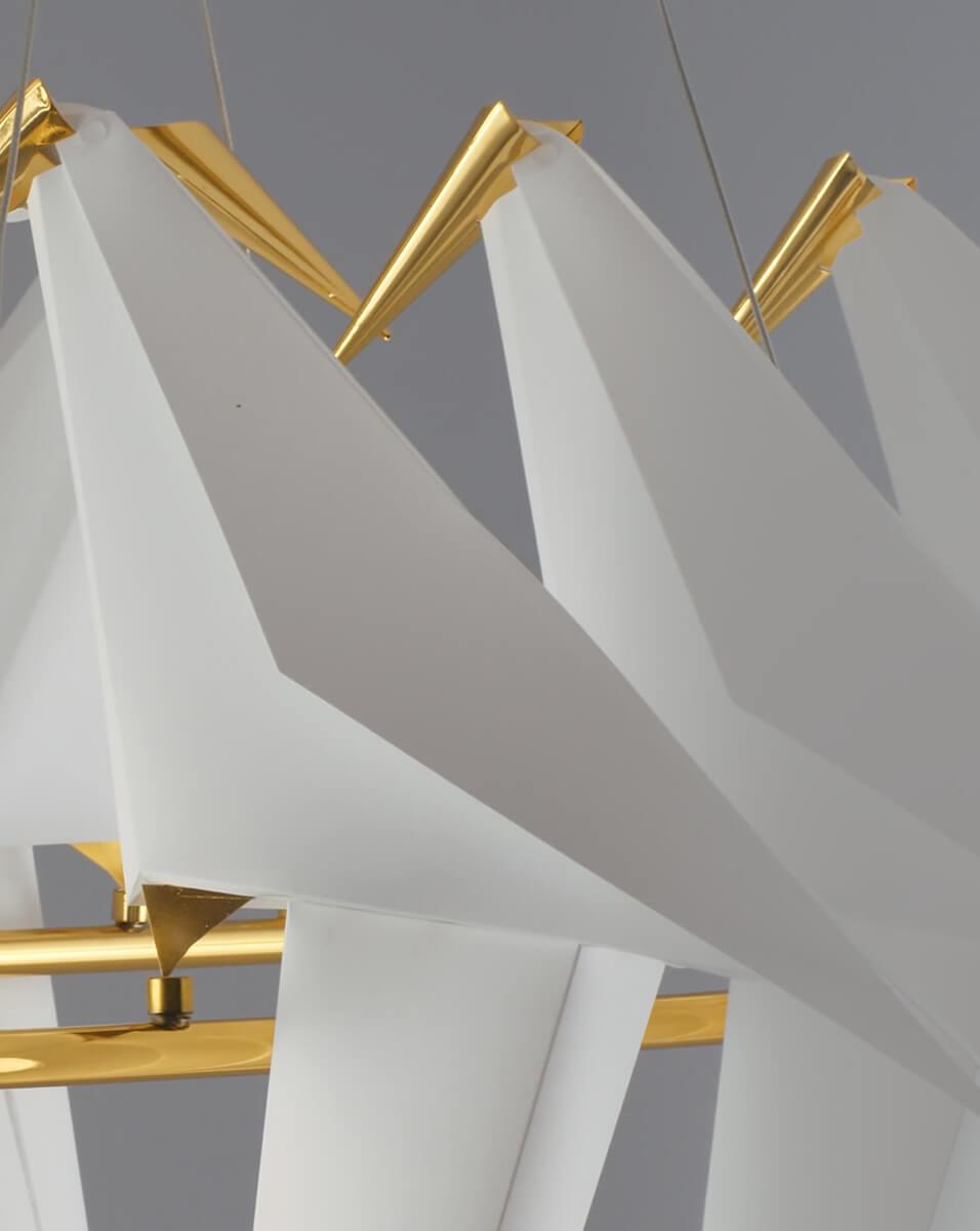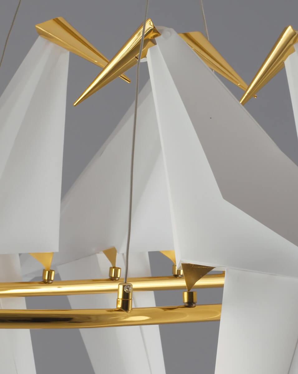 Подвесной светодиодный светильник Moderli Birds V3073-6PL от Китайского бренда из коллекции Birds предназначен для установки на потолок в спальни в хай-тек стиле. Cветильник в форме с металлической арматурой залотого цвета и белого цвета плафонами из предназначен для освещения 18 м2.